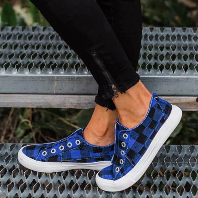 Кеды женские холщовые, кроссовки в клетку, плоская подошва, Вулканизированная подошва, без застежки, повседневная обувь на платформе, весна