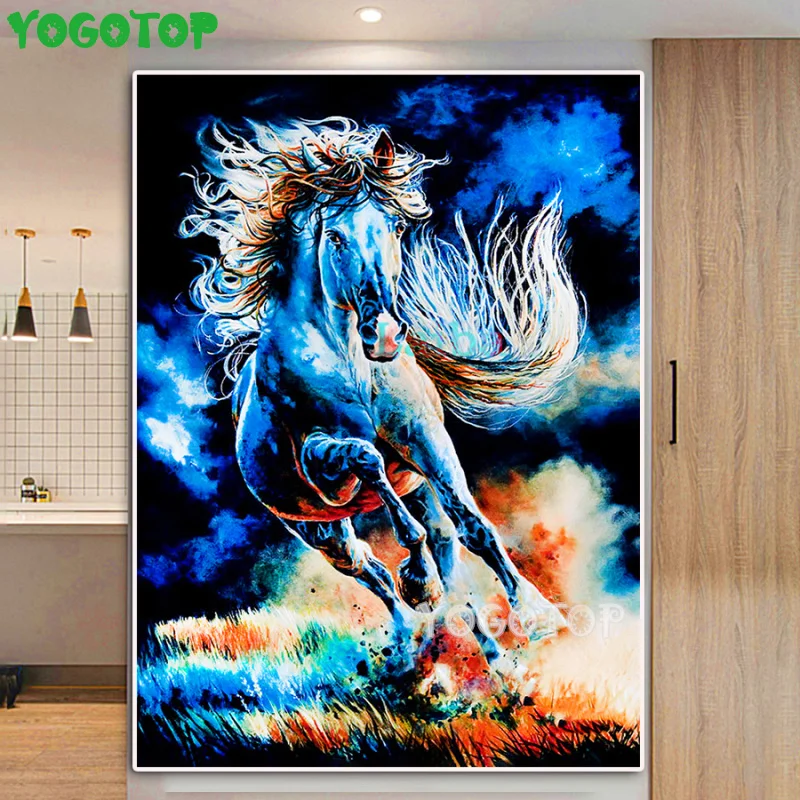 5D алмазная живопись синяя лошадь полная квадратная круглая вышивка крестиком Алмазная мозаика Сделай Сам Вышивка Животное украшение стены пазл YY4820