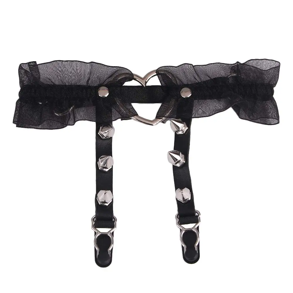 1 шт. Для женщин сексуальные кружевные подвязки, Кружевная подвязка с подвязки плотно прилегающие лямки нижнее белье в стиле Харадзюку эластичность из искусственной кожи с рисунком сердца и упряжь панк подвязки