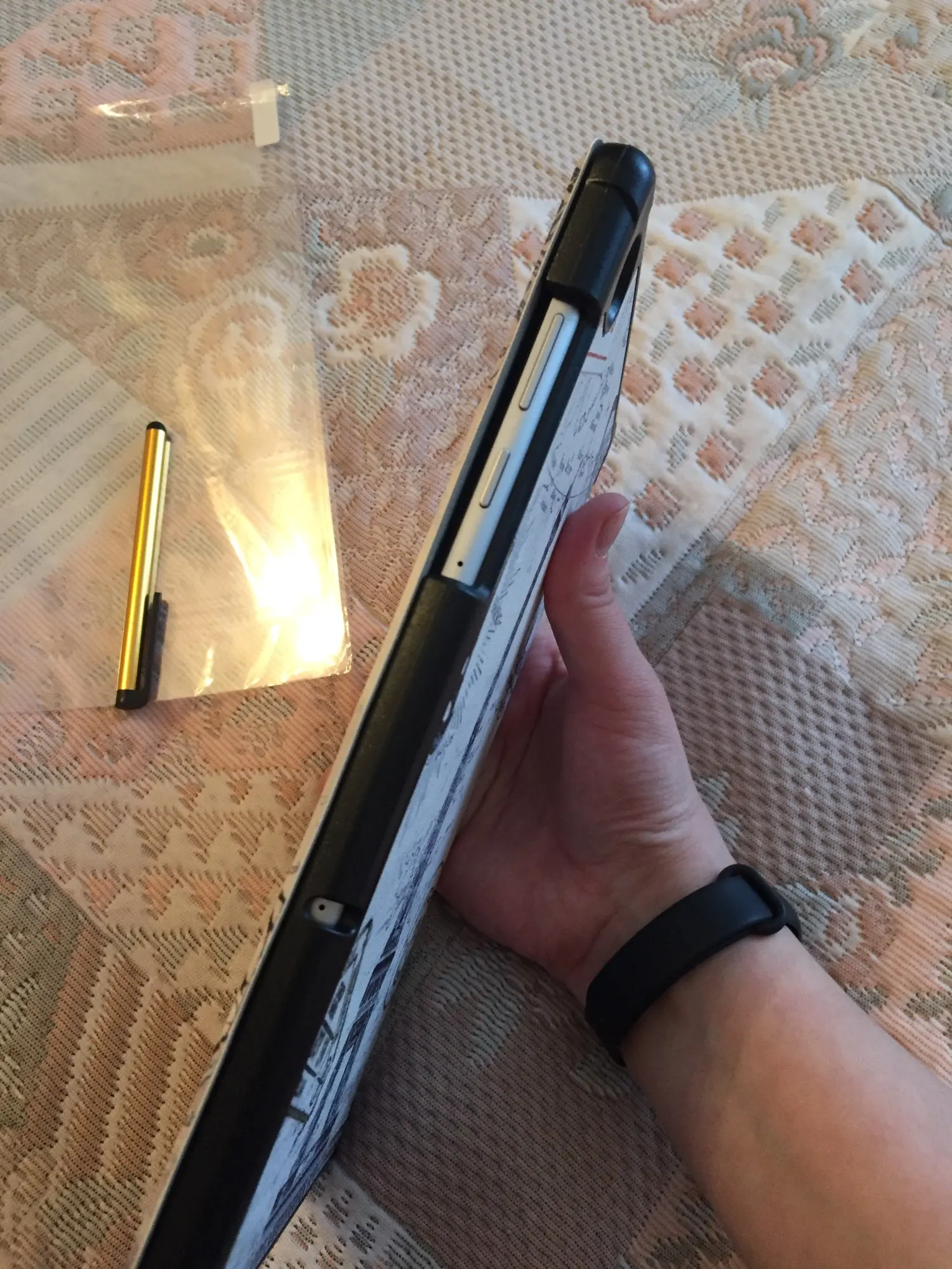 Очень качественный чехол. Края из прочного пластика, все вырезы совпадают. При открытии планшет включается, крышка на магнитах. В подарок получаете стилус и защитную плёнку. Быстрая доставка, рекомендую.