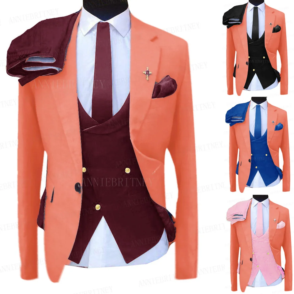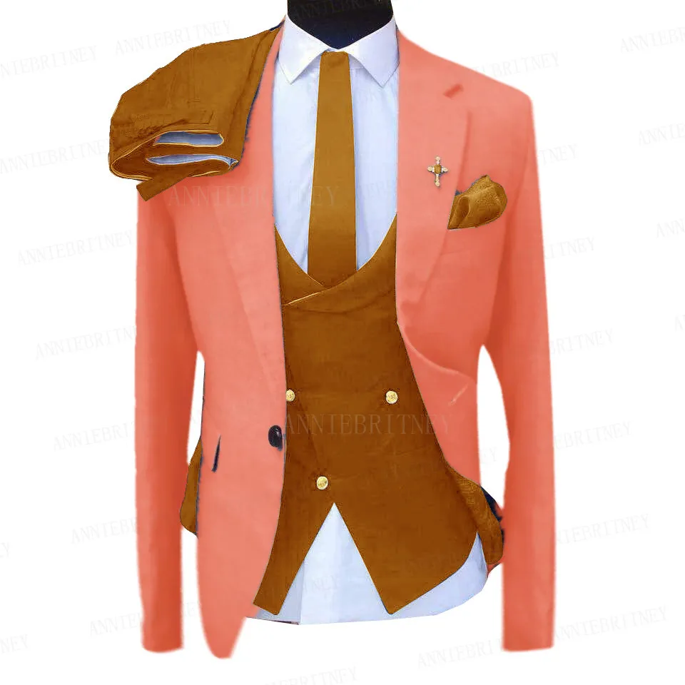 Повседневный оранжевый мужской костюм 2020, смокинг из 3 предметов,...