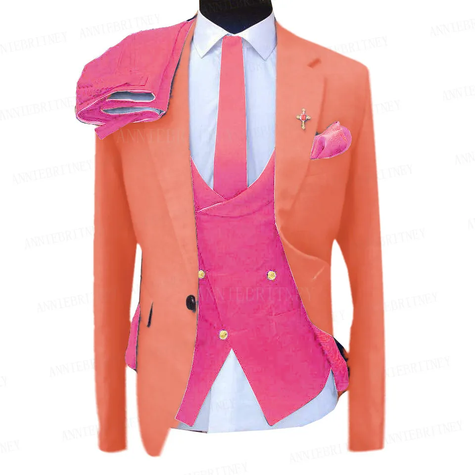 Мужские костюмы из 2 предметов, кораллово-красные костюмы для жених...