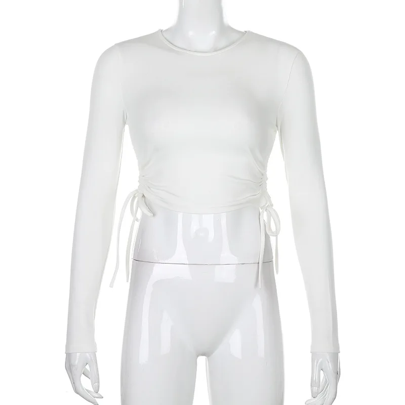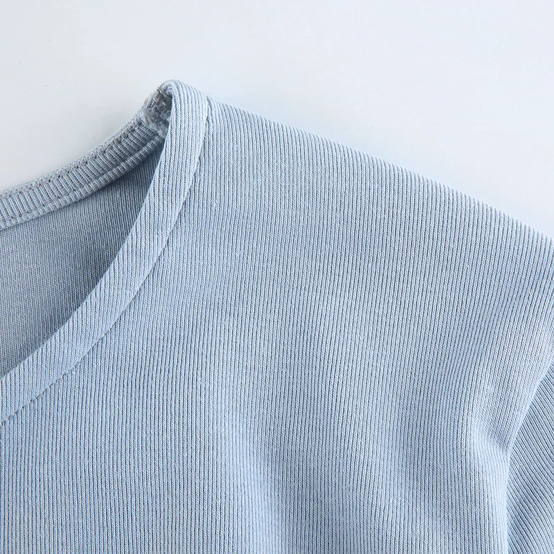 Женский трикотажный топ с круглым вырезом и длинным рукавом