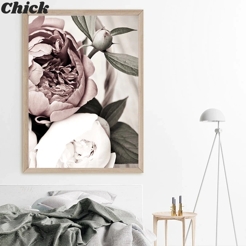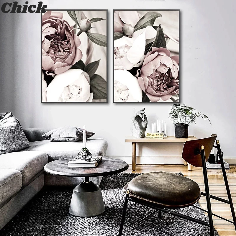 Постер с розовыми пионами и цветами в скандинавском стиле, модные ц...