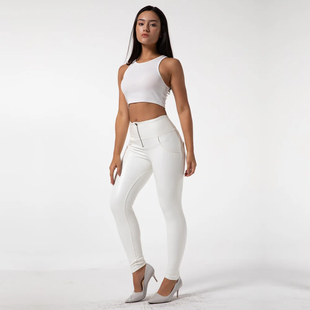 Melody, штаны для йоги с высокой талией, белые спортивные Леггинсы для фитнеса, женские штаны для тренировок, облегающие кожаные леггинсы