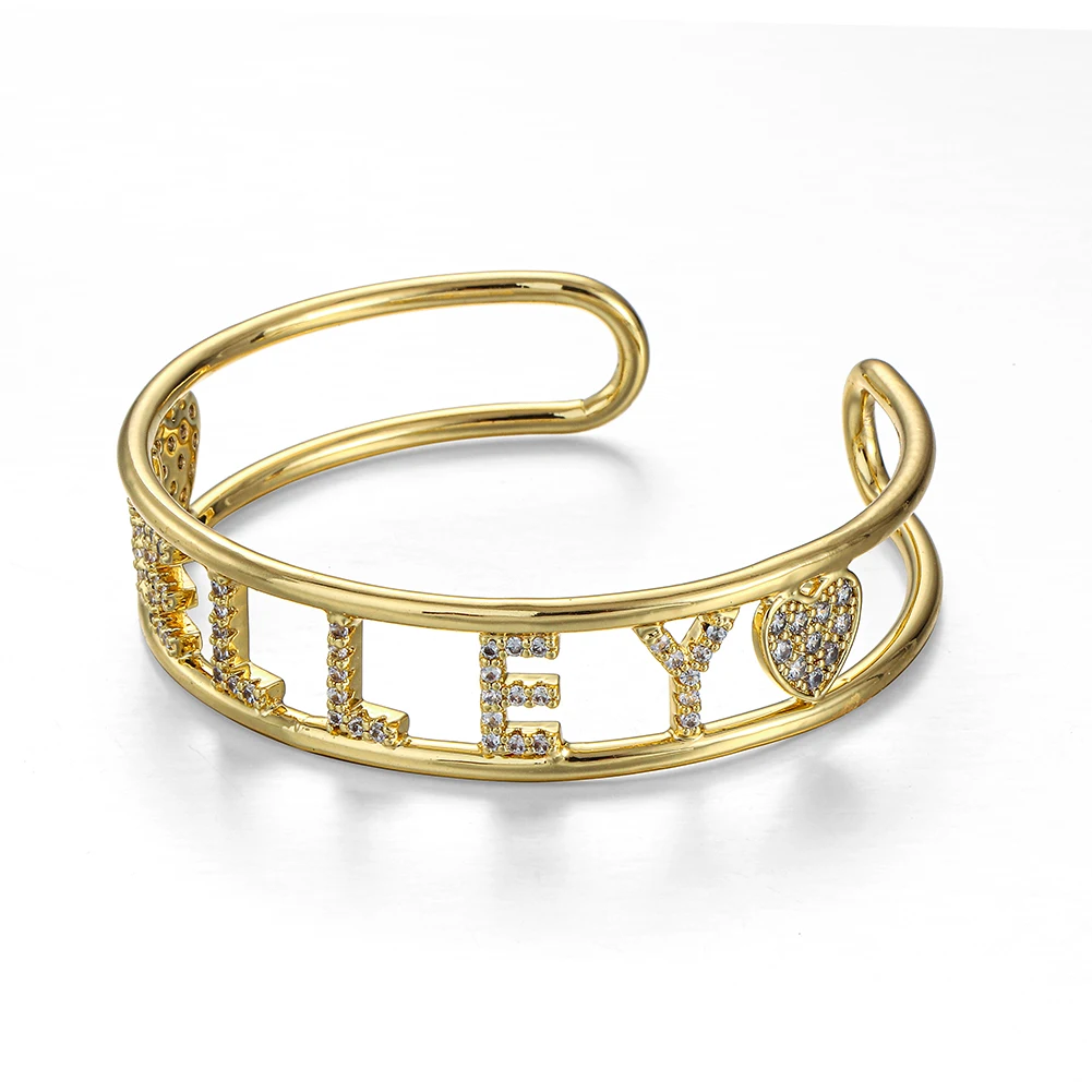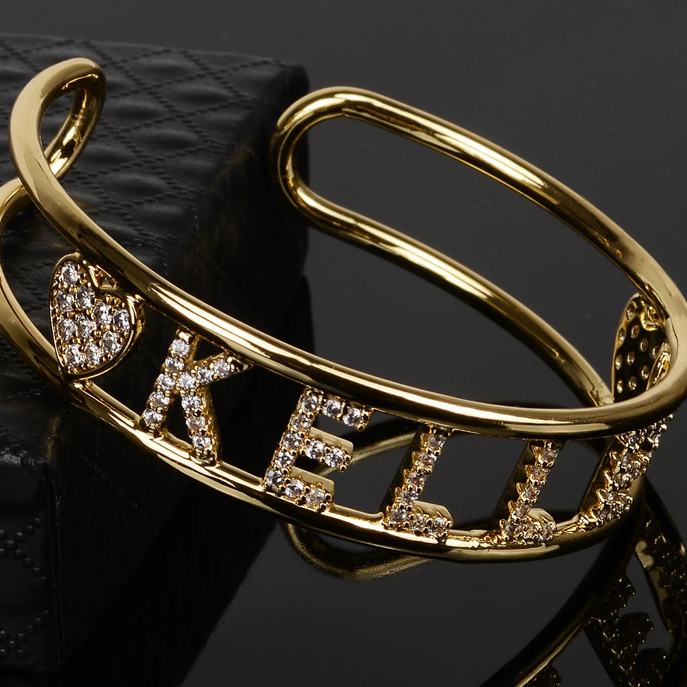 Браслет с именем, медный браслет с фианитами, буквами, ювелирные изделия с алфавитом на заказ для женщин, Подарок на юбилей, Цапля, аксессуары
