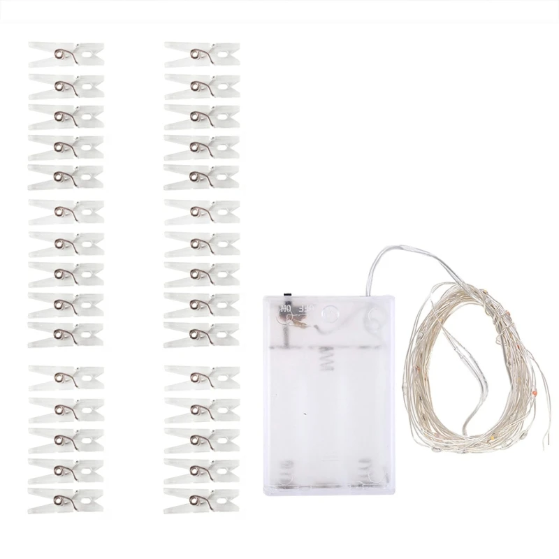 Гирлянда с прищепками для фотографий, 30 светодиодов, на батарейках