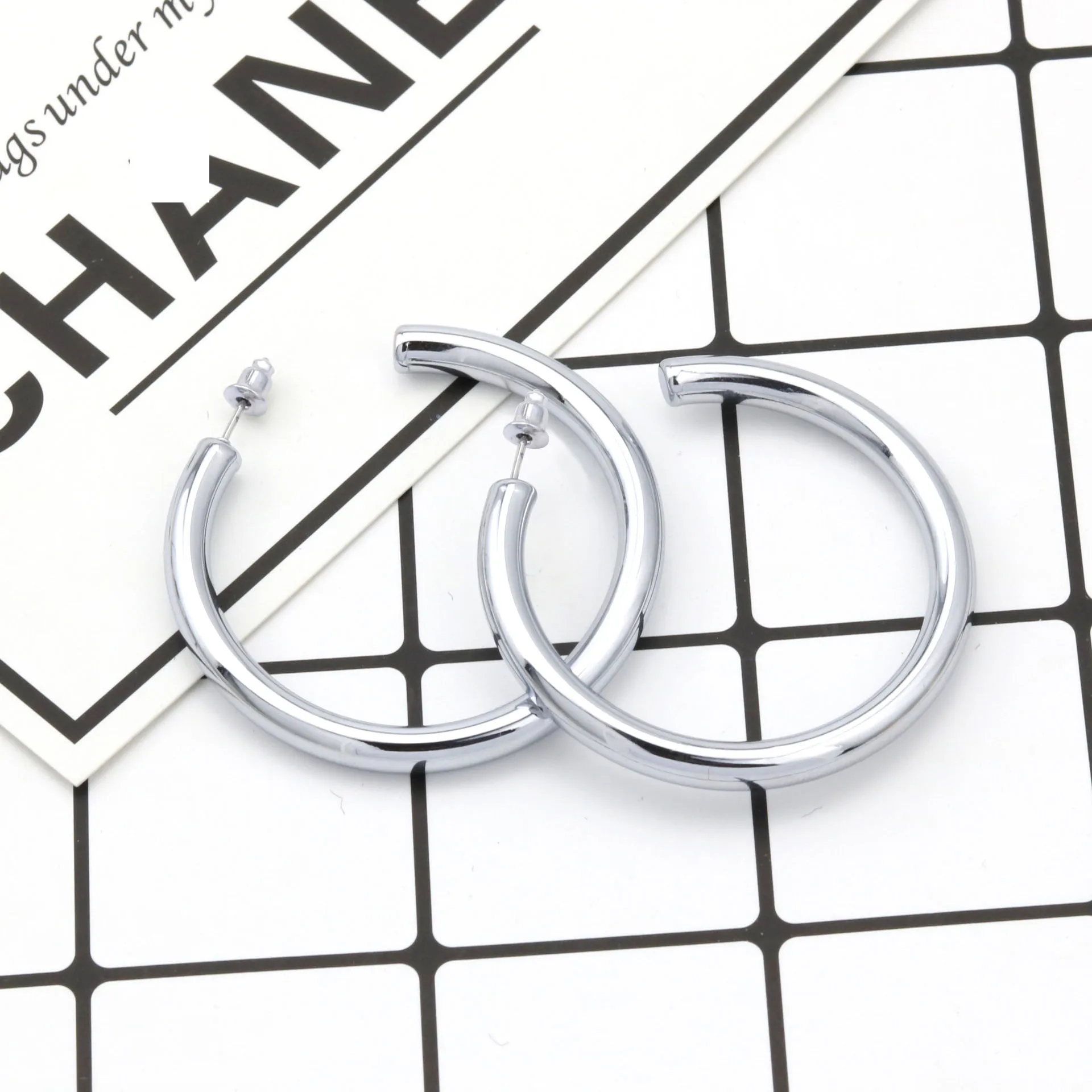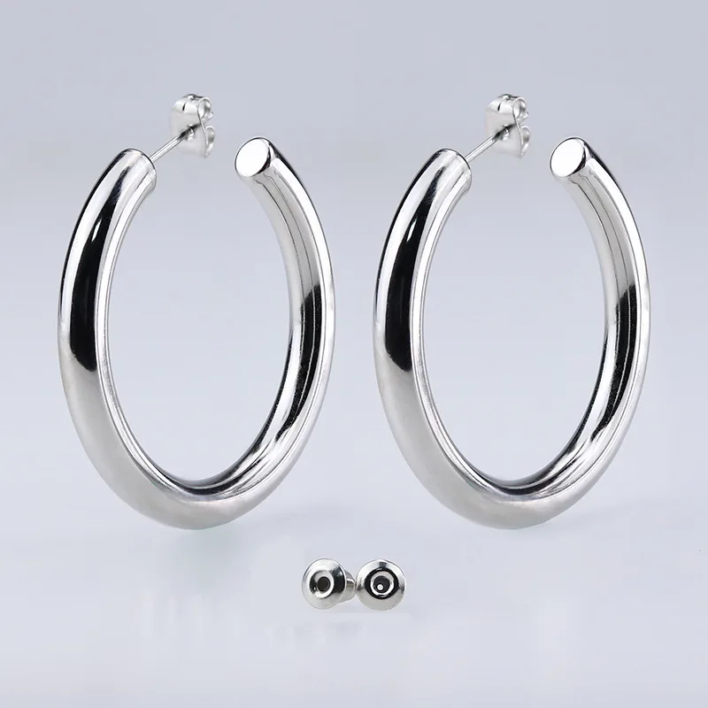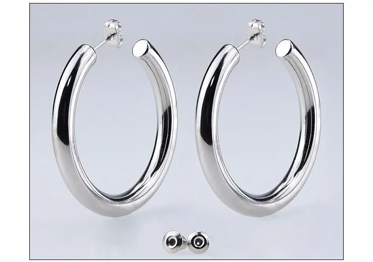 Серьги из хирургической стали, минималистичные, большие, 5 мм, толстые, массивные, открытые серьги-кольца для женщин, Круглые, из нержавеющей стали, легкие
