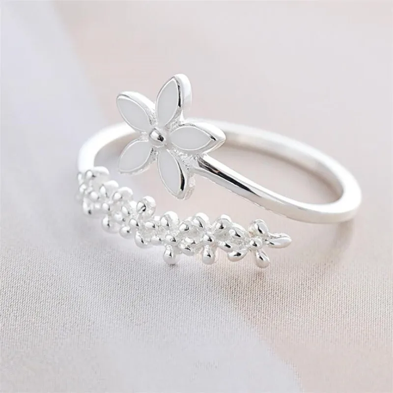Свежий цветок Серебряный Цвет темперамент личности литературный мода подарок в Корейском стиле женские любимой Регулировка размера Открытие Кольца вечерние, ювелирное изделие, подарок