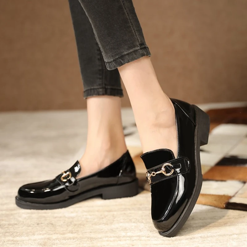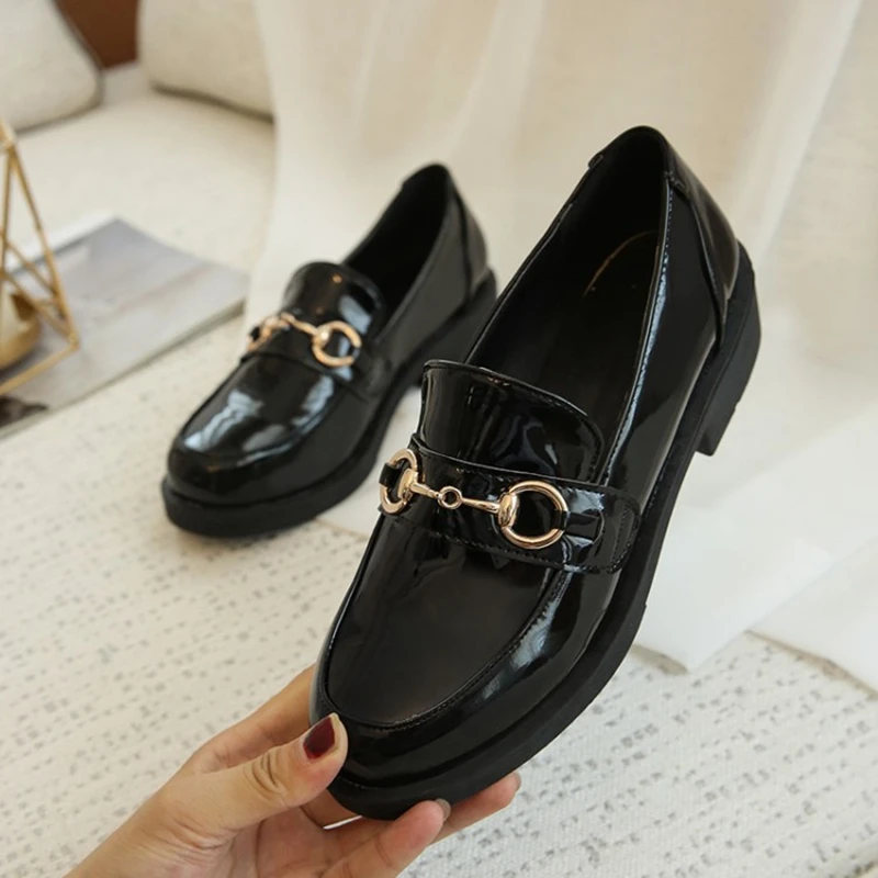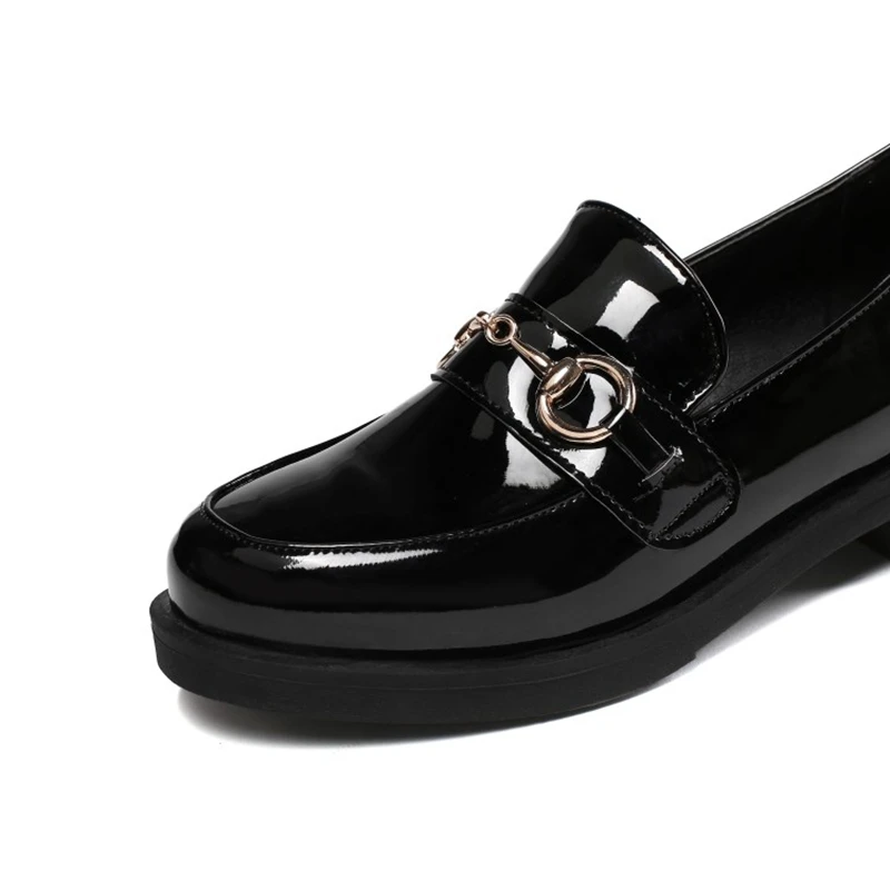 BLXQPYT 2021 на весну-осень на каблуке средней высоты Повседневная круглый носок размера плюс 32-48 кожаные женские британский стиль Женская обувь на толстой подошве женская обувь K12