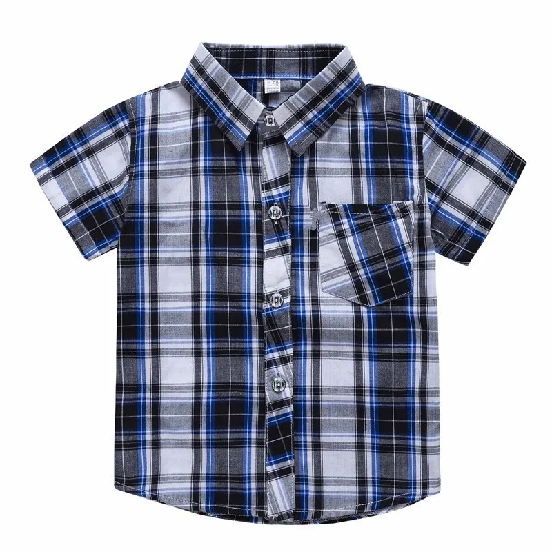 Детская одежда, рубашка в клетку для мальчиков, детский топ высокого качества для малышей, 5 цветов, летняя детская рубашка с коротким рукавом, одежда