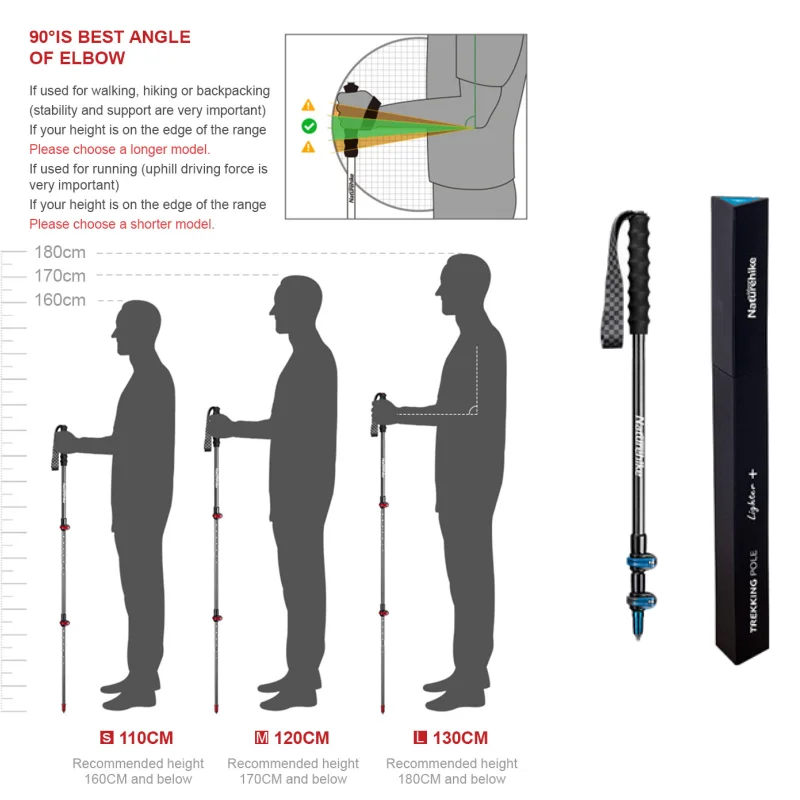 Naturehike 135 г углеродного волокна внешний быстрый замок со внутренним, вращающимся затвором Пеший Туризм Альпинизм Портативный трость съемки костыль