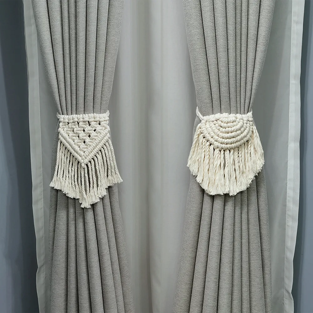 Скандинавские ремни для штор с бежевыми листьями, ручная работа из пеньковой веревки, хлопковая веревка с кисточками, занавески, тибэкс, пряжки, украшения MY366 #5
