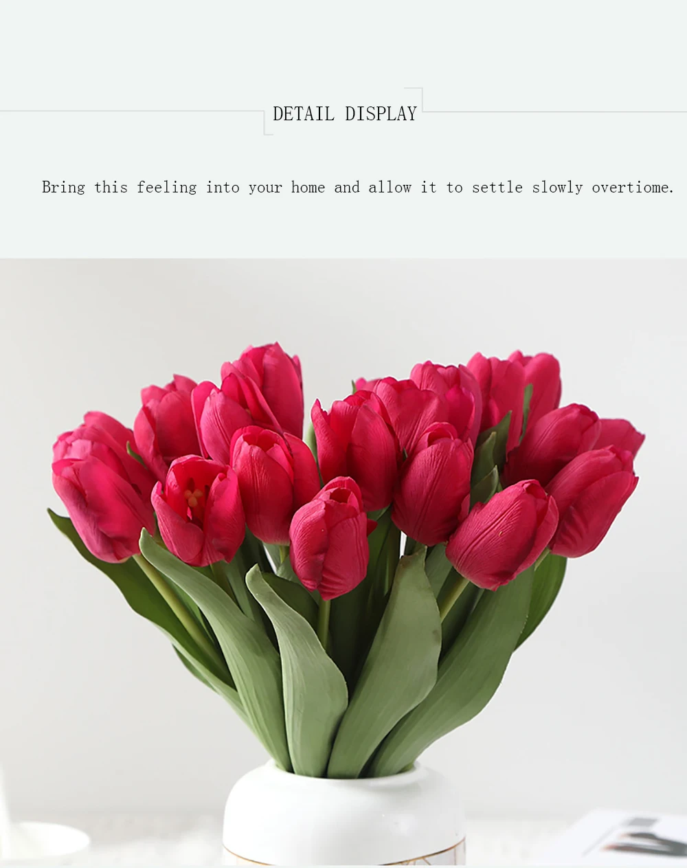 Название цветка: поддельные цветы Тюльпан Материал: пластик, шелк и железная проволока Цвет: белый, розовый, красный, фиолетовый, розовый, бежевый, оранжевый Размер: Общая длина 34 см Посылка включает в себя: искусственный цветок тюльпана Особенности: Красивые Искусственные цветы для дома/свадьбы/магазина/вечерние украшения. Высококачественный материал: прочный и многоразовый. Делает ваш дом/свадьбу/магазин/вечерние более модными и красивыми. Создает чудесную атмосферу. Любовь и красота, сияние, смелость