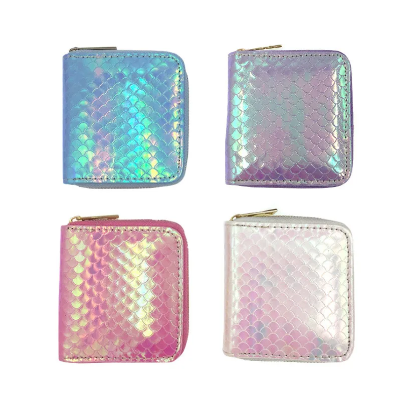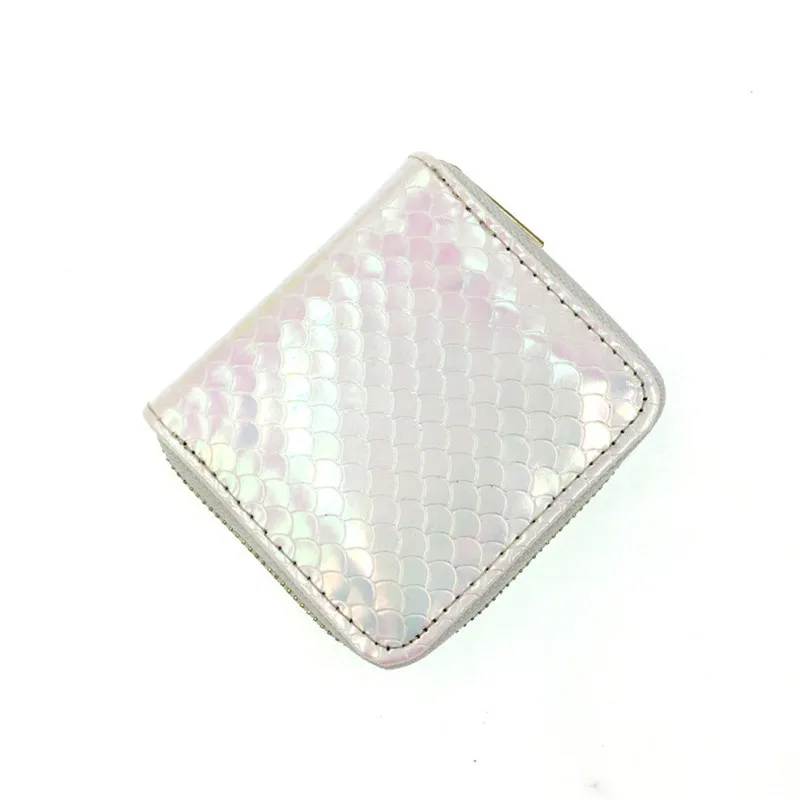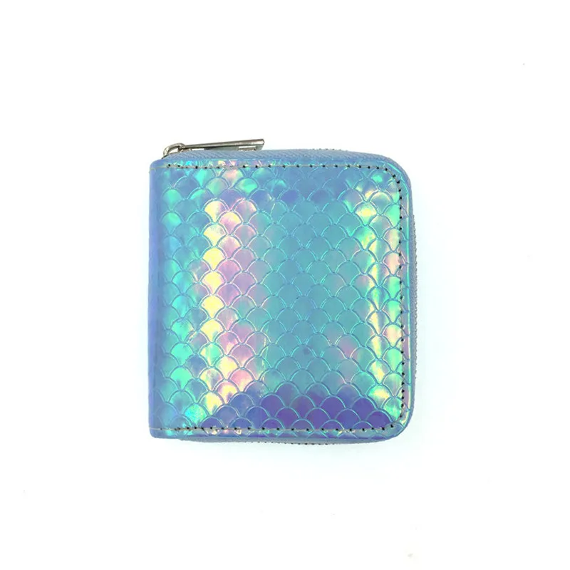 Модный женский кошелек с узором русалки, 4 цвета, Симпатичные Короткие Кошельки из искусственной кожи для монет, Женский кошелек для удостоверения личности и кредитных карт, клатч на молнии