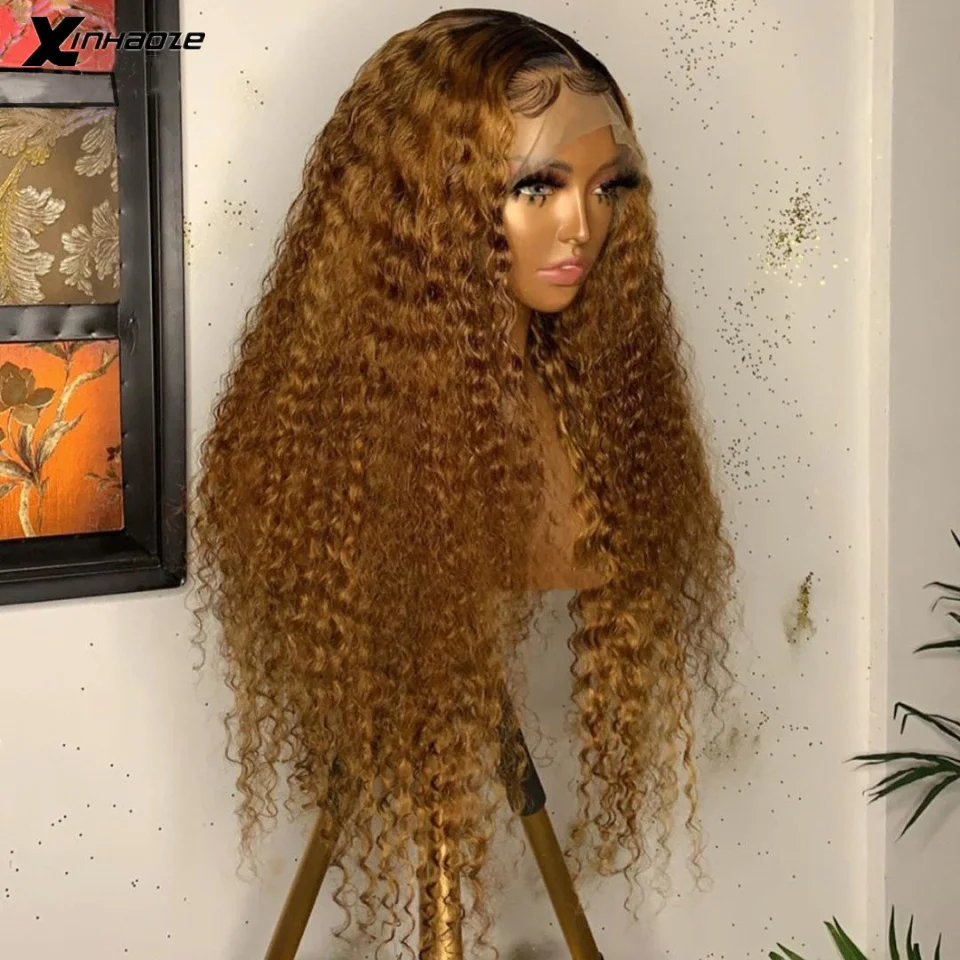 Парик Омбре из блонд-коричневого цвета 13x 4, парики из человеческих волос на сетке спереди, вьющиеся волосы 5x5, парик с шелковым верхом и застежкой на сетке, предварительно выщипанный парик без кутикулы, парик с Реми-сеткой
