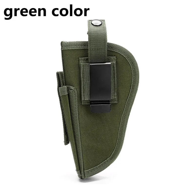 Характеристика: -Скрытая универсальная кобура -Регулировка подходит для левой и правой руки свободного переключения -Светильник изысканного изготовления и прочный, легко носить с собой -Имейте защитную пряжку в футляре с металлическим зажимом для ремня -Идеально подходит для военных, правоохранительных органов, охотников Посылка: 1 x кобура для пистолета Описание товара: Этот каждый день носит тактический пистолет кобура был разработан, чтобы соответствовать пистолетам от среднего до субкомпактного пистолетов. Он имеет застежку-петлю, чтобы убедиться, что оружие остается в безопасности и на месте. Можно использовать с обеих сторон влево и вправо, просто заменив стальной зажим с одной стороны на другую. Вы также можете поместить дополнительный журнал в панель держателя зажима, расположенную в передней части кобуры. Он также имеет застежку-липучку, чтобы гарантировать, что зажим не поврежден, независимо от того, что. Особенности: Подходит для большинства средних, компактных и компактных пистолетов Ремень для крепления кнопки Металлическая оправа для большого пальца Восстановленный стальной зажим Использование Ambidextrous на левой или правой стороне Дополнительный держатель для журналов спереди Застежка-липучка для держателя журнала Размеры: 7,5 "L x 5,25" Ш x 1,5 "D (19 см x 13 см x 3,5 см) Примерная Цвет: армейский зеленый, черный, коричневый Вес: 135 г Посылка 1 x чехол