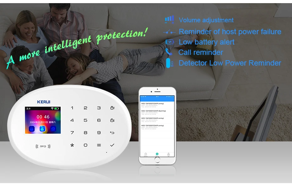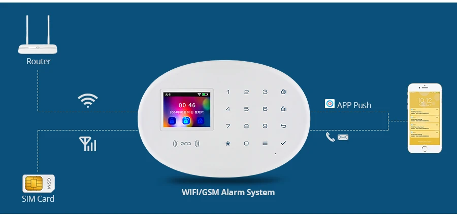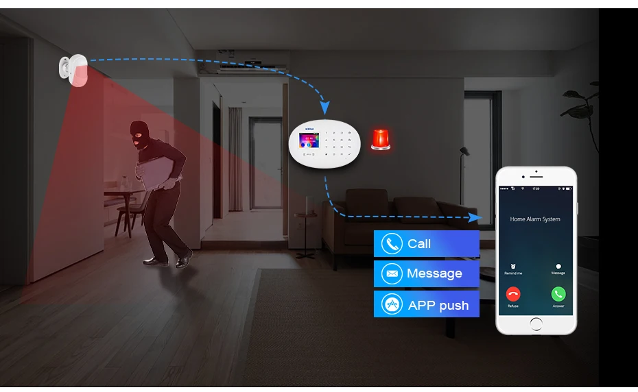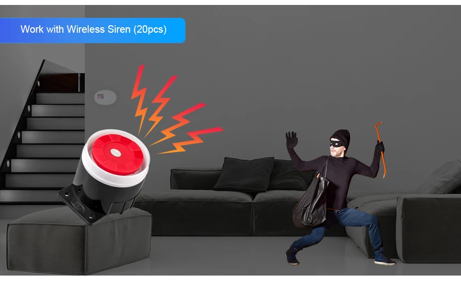 Совместим с беспроводным PIR датчиком, датчиком двери, детектором дыма, детектором газа, кнопкой паники и т. д. Он широко используется для дома, фабрики, школы, магазина, виллы и жилого района, чтобы обеспечить защиту ценных активов