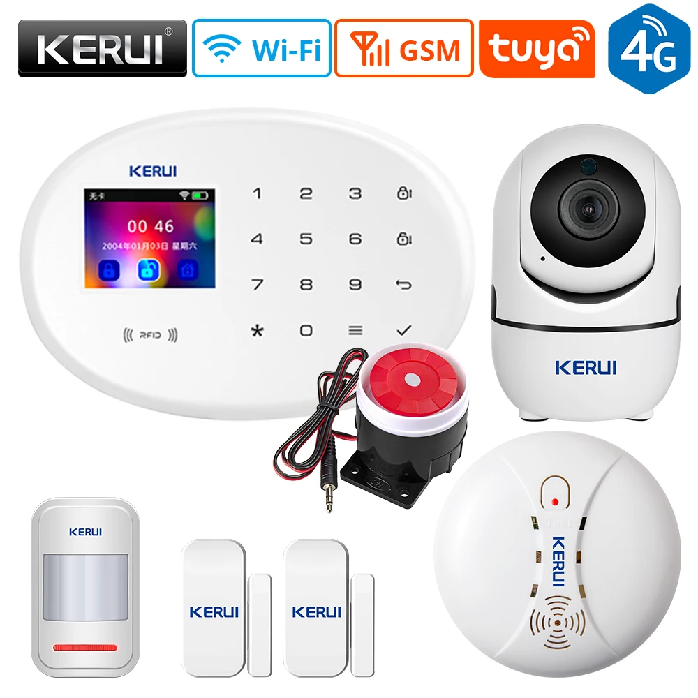 KERUI W204 Wifi GSM домашняя система охранной сигнализации 2,4 дюймов Сенсорная панель управление через приложение дверной датчик инфракрасный датчик движения датчик дыма