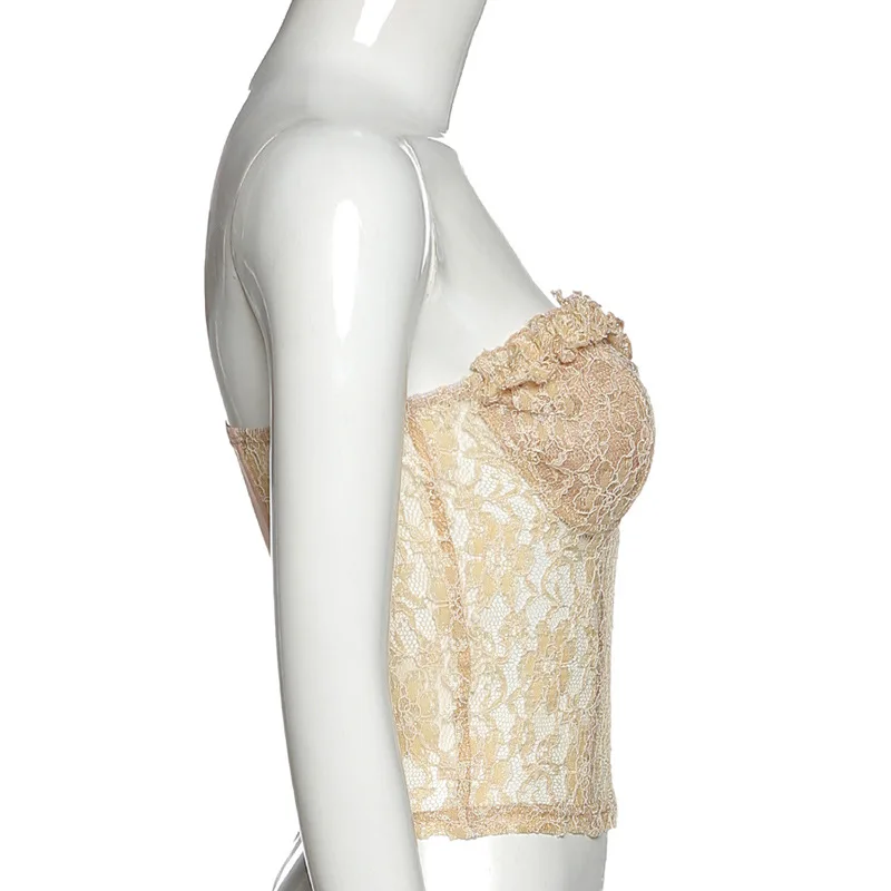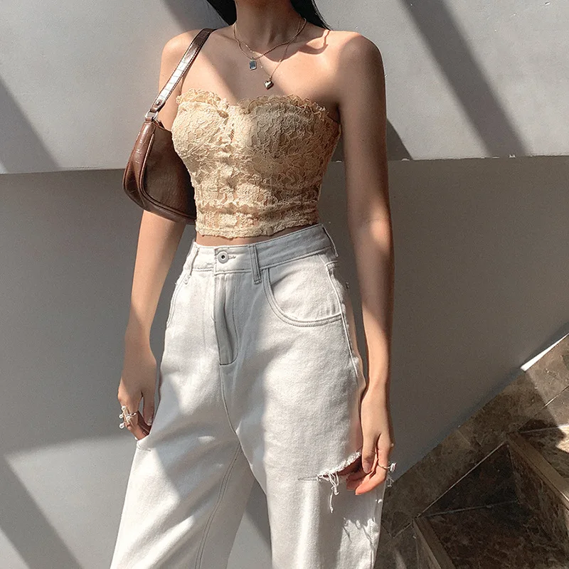 Женский топ без бретелек Yimunancy, кружевная вышивка с цветочным р...