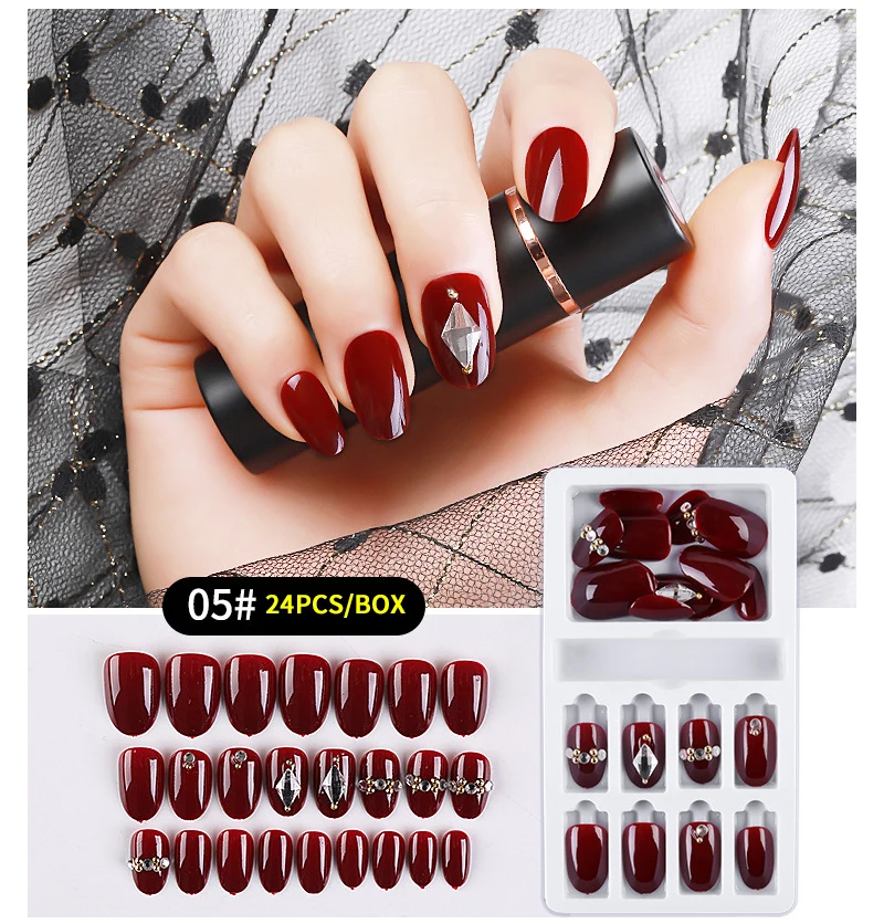 Набор накладных ногтей, 24 шт., искусственные ногти с кристаллами, Типсы для наращивания, Короткие накладные ногти