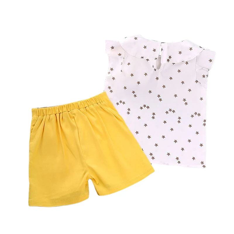 В 2021 году, футболка со звездами для маленьких девочек + шорты на пуговицах летняя одежда с короткими рукавами из 2 предметов для девочек От 2 до 6 лет