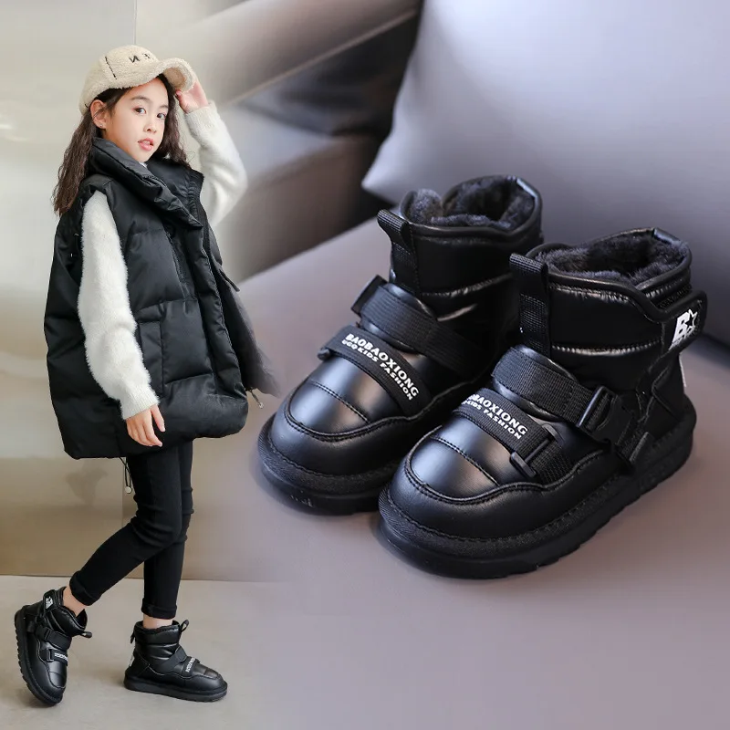 Детская обувь; Новые зимние ботинки для детей; Утолщенная обувь с хлопковой подкладкой из плюша; Водонепроницаемые противоскользящие теплые ботинки унисекс