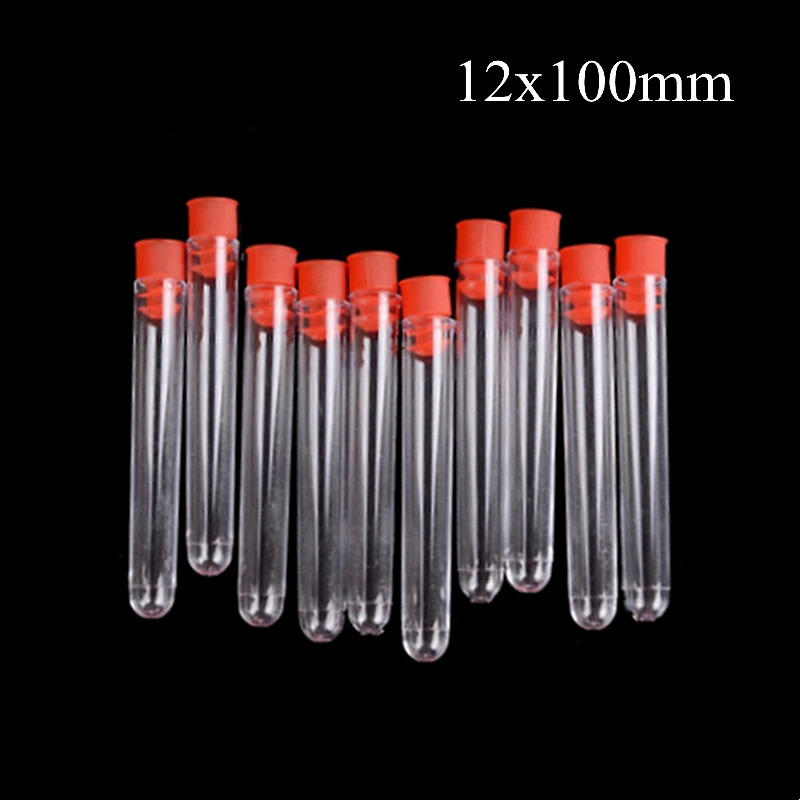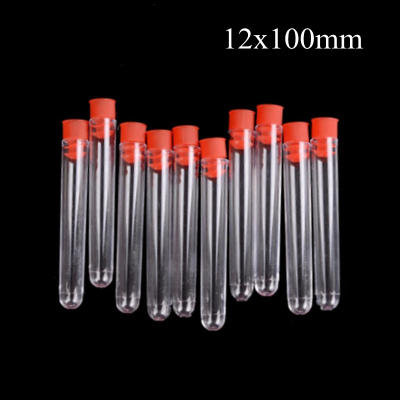 Прозрачная пластиковая пробирка с красными крышками, 10 шт.лот, 12x100 мм