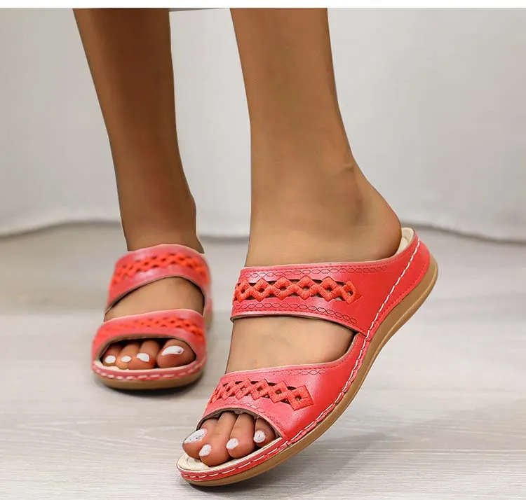 Сандалии женские в стиле ретро, повседневная обувь на плоской подошве, без застежки, сланцы, размера плюс, 2021