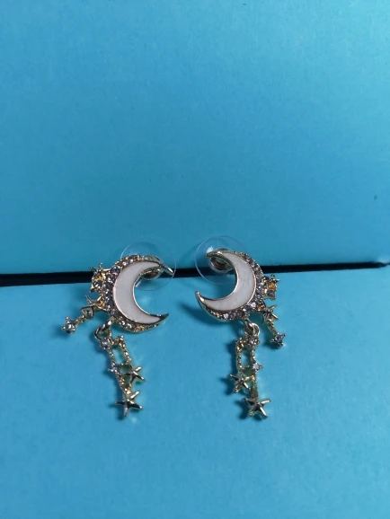 Новое поступление, стразы, трендовые геометрические висячие серьги золотистого цвета, металлическая форма лунной звезды, элегантные вечерние ювелирные изделия для женщин