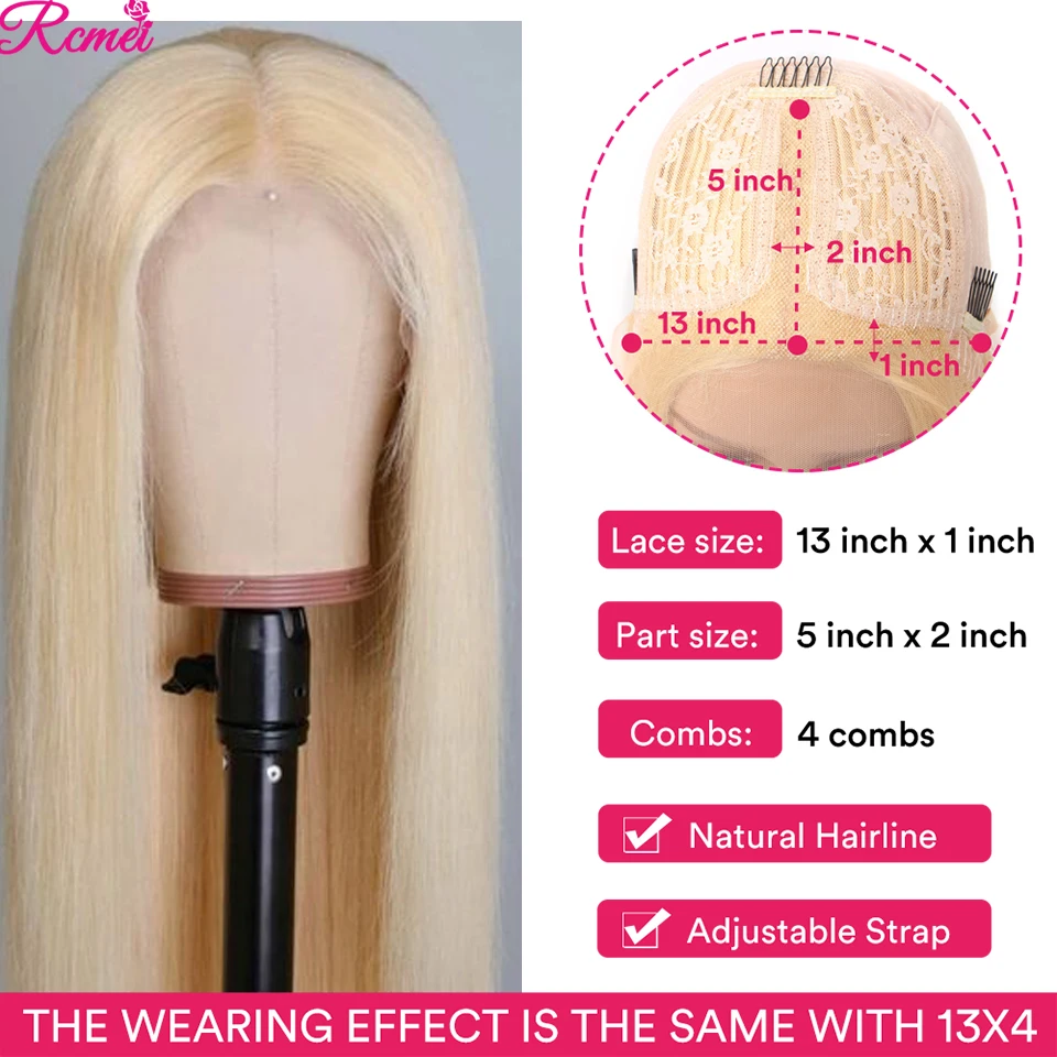 Парик из натуральных бразильских прямых волос, 613 медовый блонд, 13 х1, 150