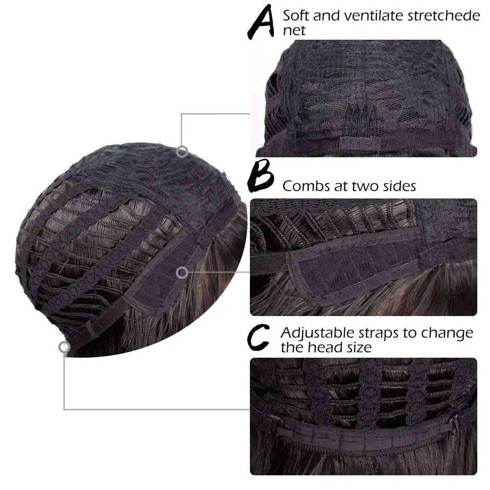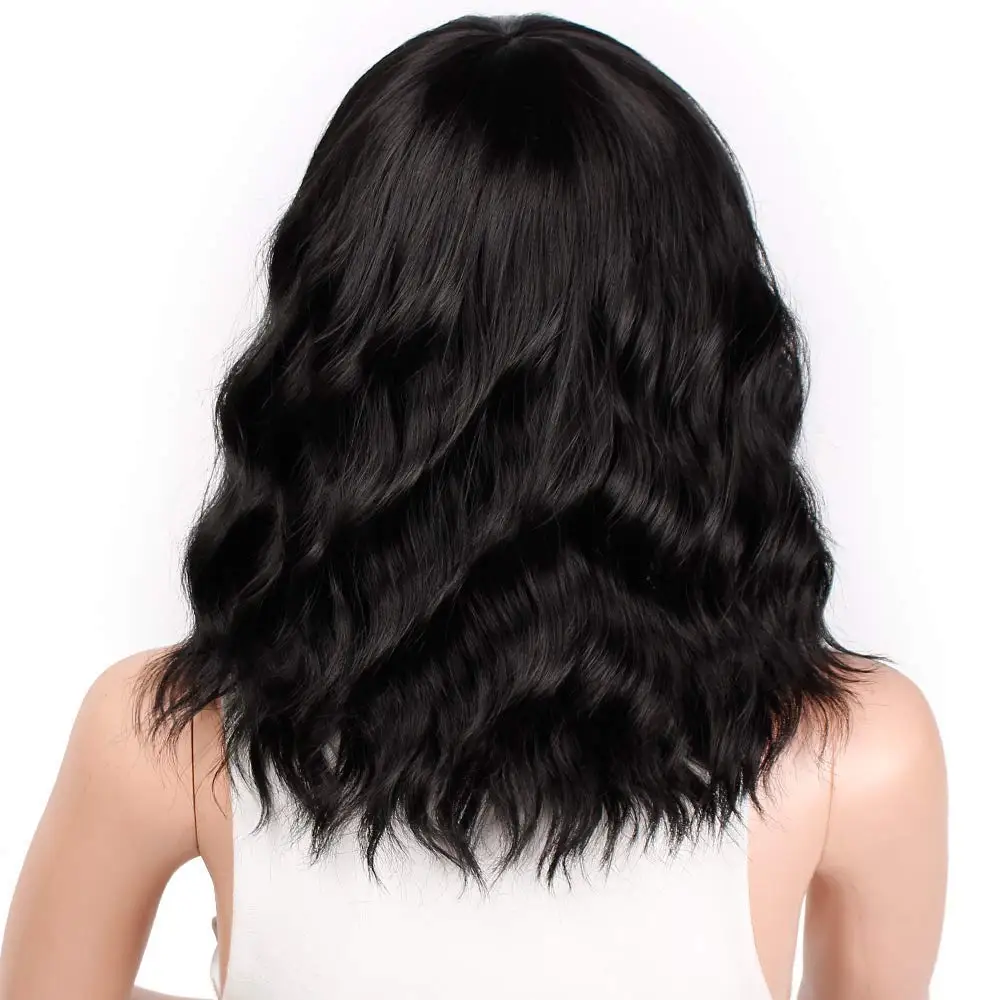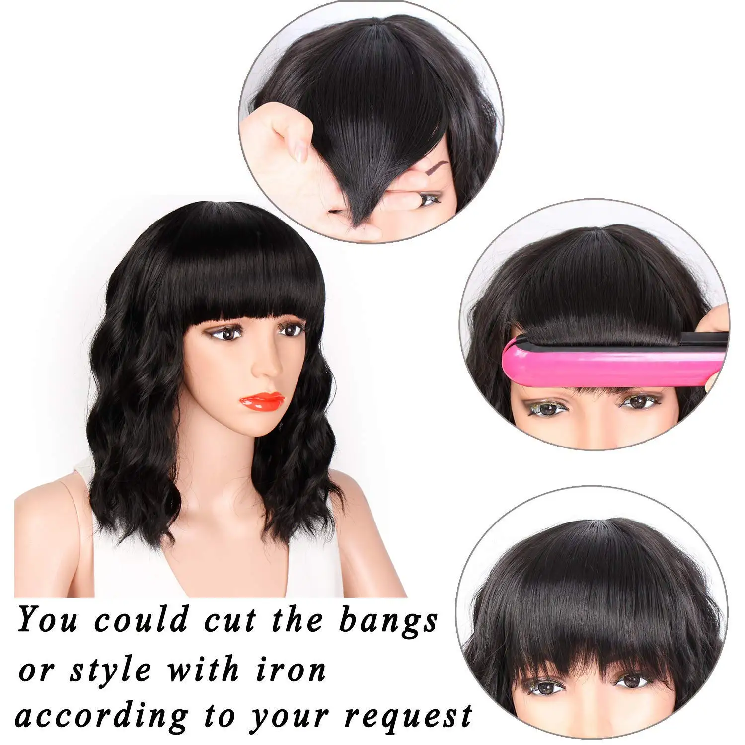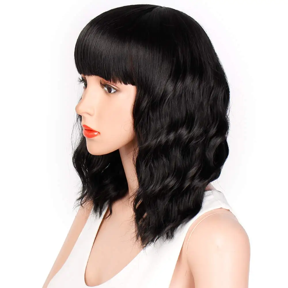 Великолепные синтетические Короткие парики боб для женщин, натуральные волнистые черные парики с челкой, термостойкие волоконные парики для косплея