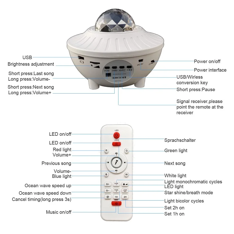 5. Bluetooth-динамик: ночной Небесный проектор с bluetooth-динамиком s, что означает, что вы можете подключить любое устройство с Bluetooth, чтобы воспроизводить любимую музыку или читать музыку