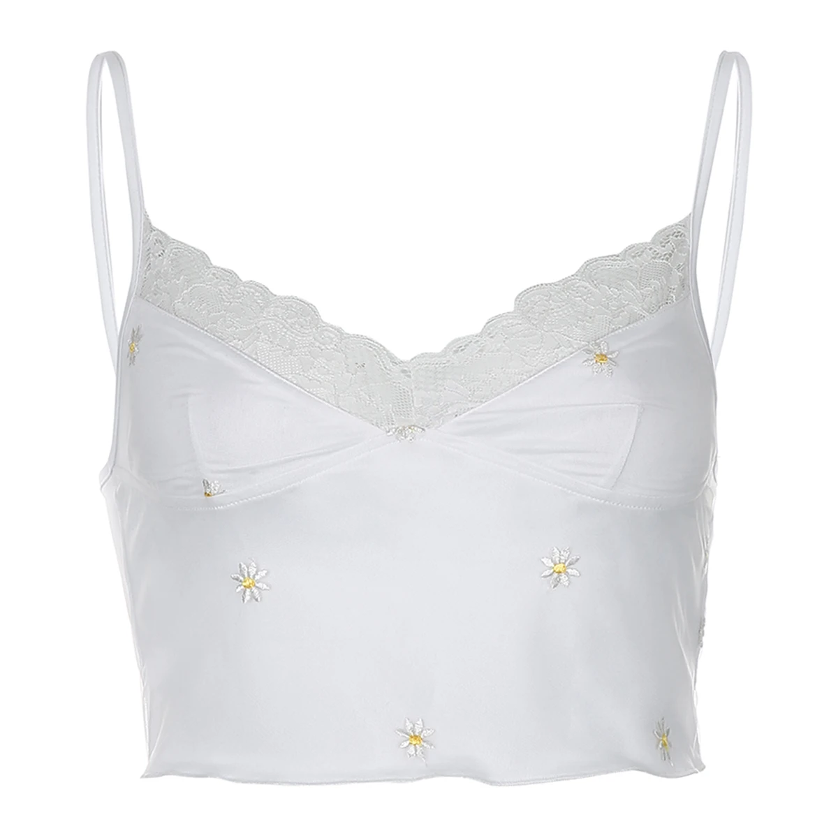 Женский кружевной топ без рукавов, белый топ на тонких бретелях, летний укороченный топ с принтом и открытой спиной, V-образный вырез, Y2K