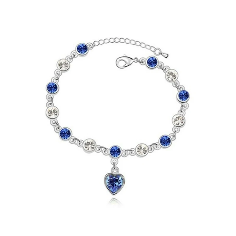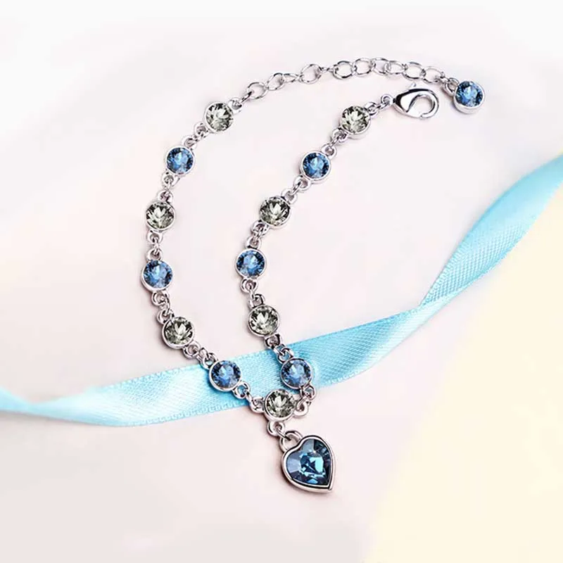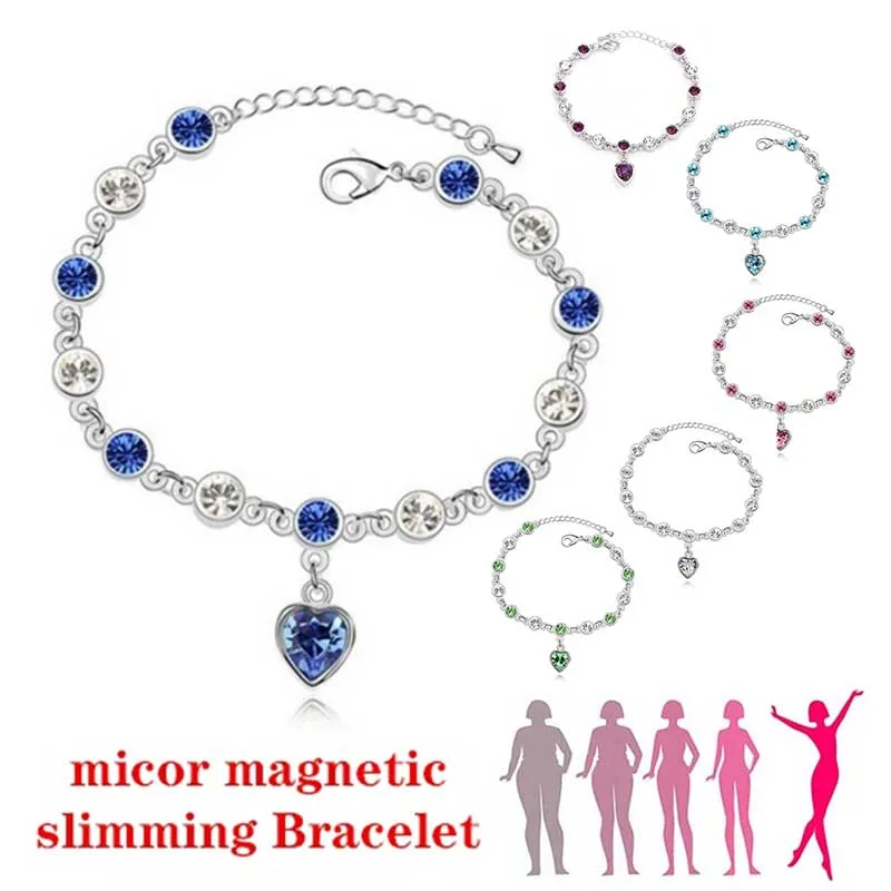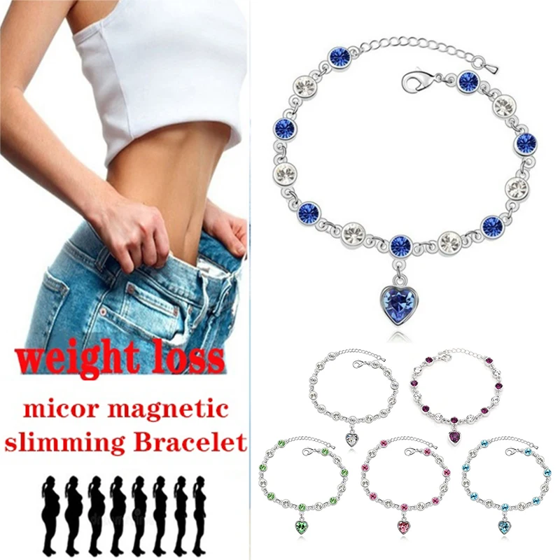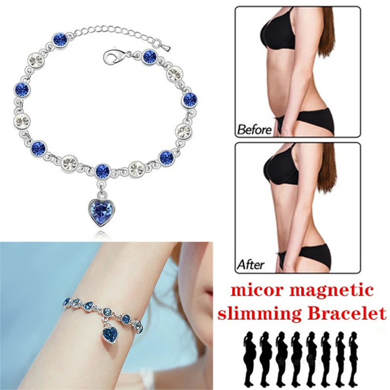 Изысканный браслет для похудения в форме сердца, серебро 925 пробы Браслет из голубых кристаллов, магнитная терапия, сжигание жира, ювелирные изделия для здоровья