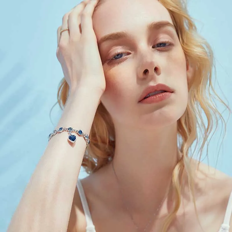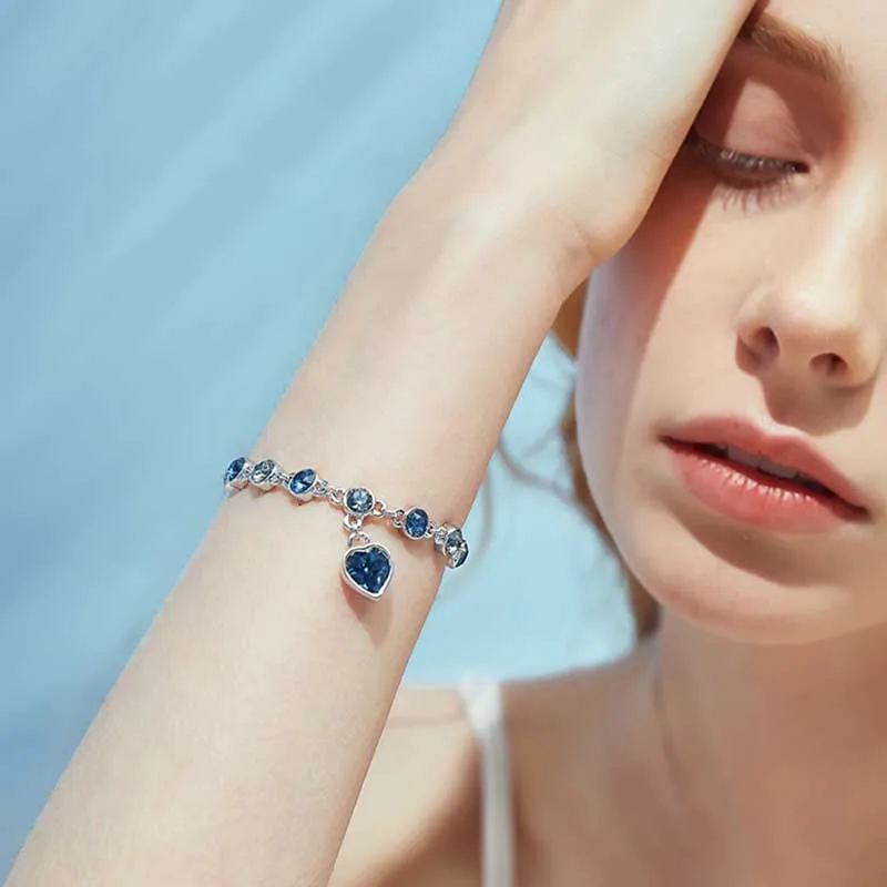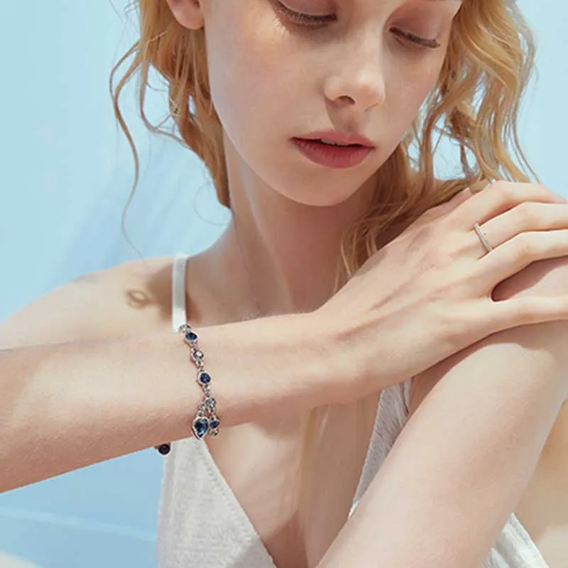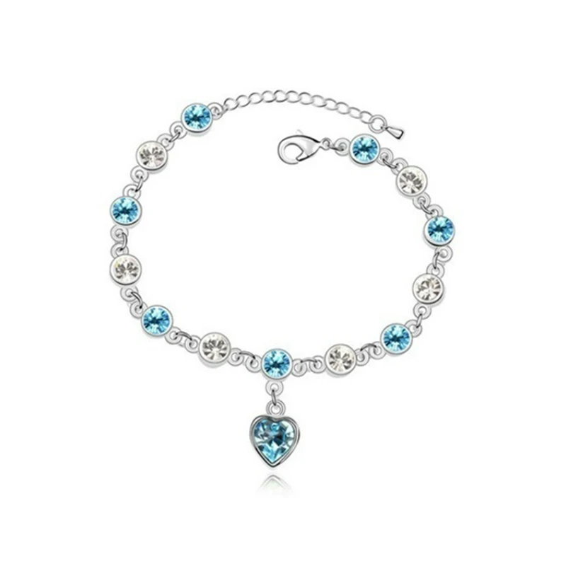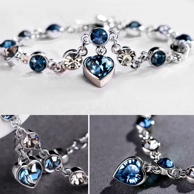 Изысканный браслет для похудения в форме сердца, серебро 925 пробы Браслет из голубых кристаллов, магнитная терапия, сжигание жира, ювелирные изделия для здоровья