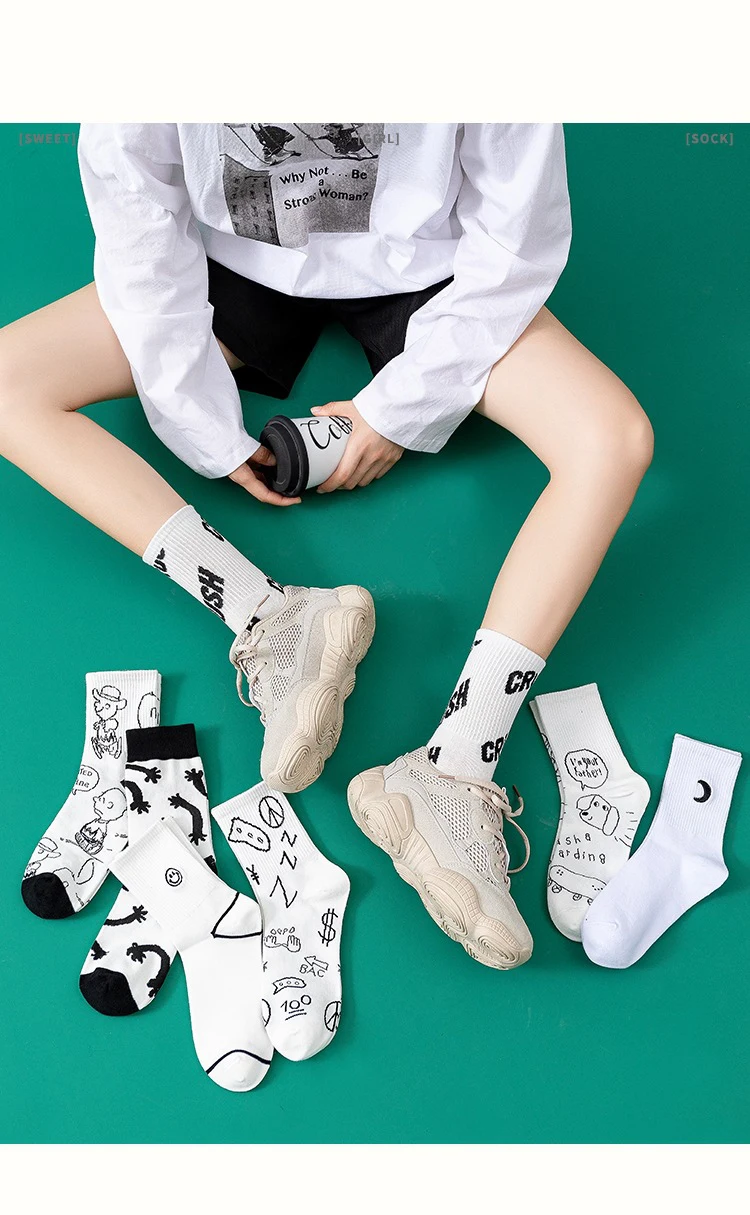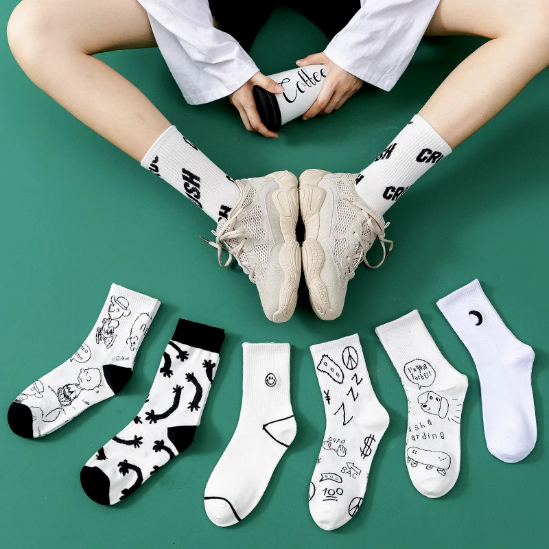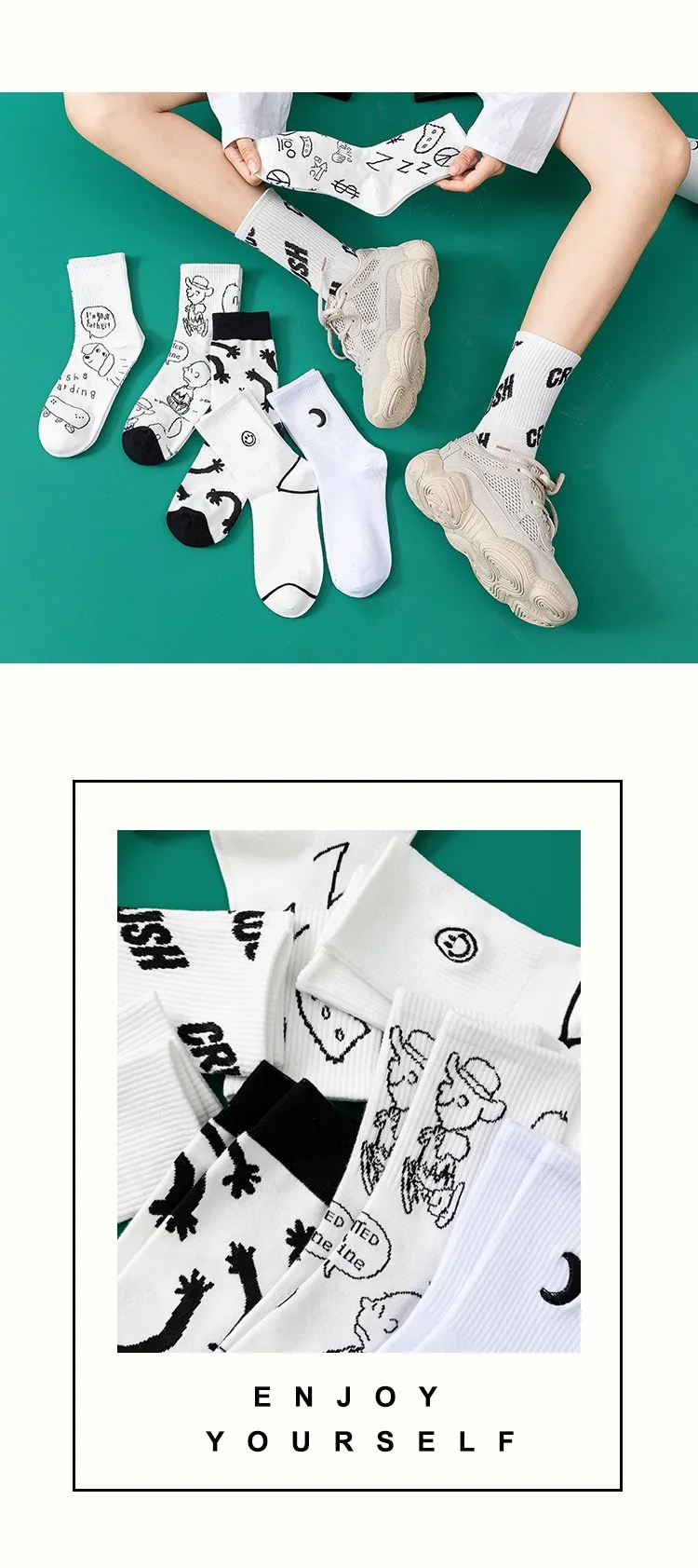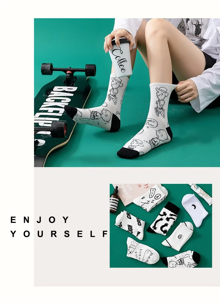 Забавные носки, белые, крутые, kawaii, мягкие, harajuku, женские, chaussette femme, Мультяшные, счастливые, дизайнерские, милые, meias, женские носки из хлопка