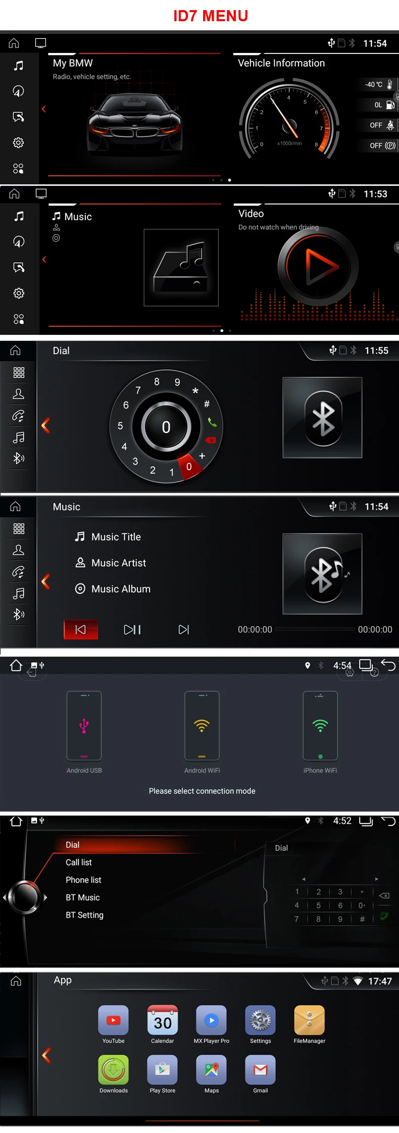 4.Совместим с заводским Canbus, поддержка iDrive, управление рулевым колесом, информация о автомобиле.