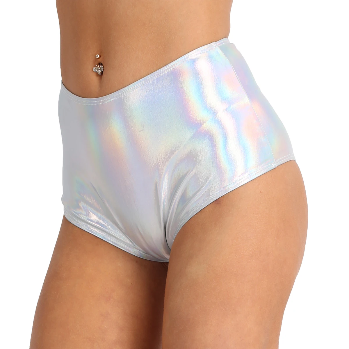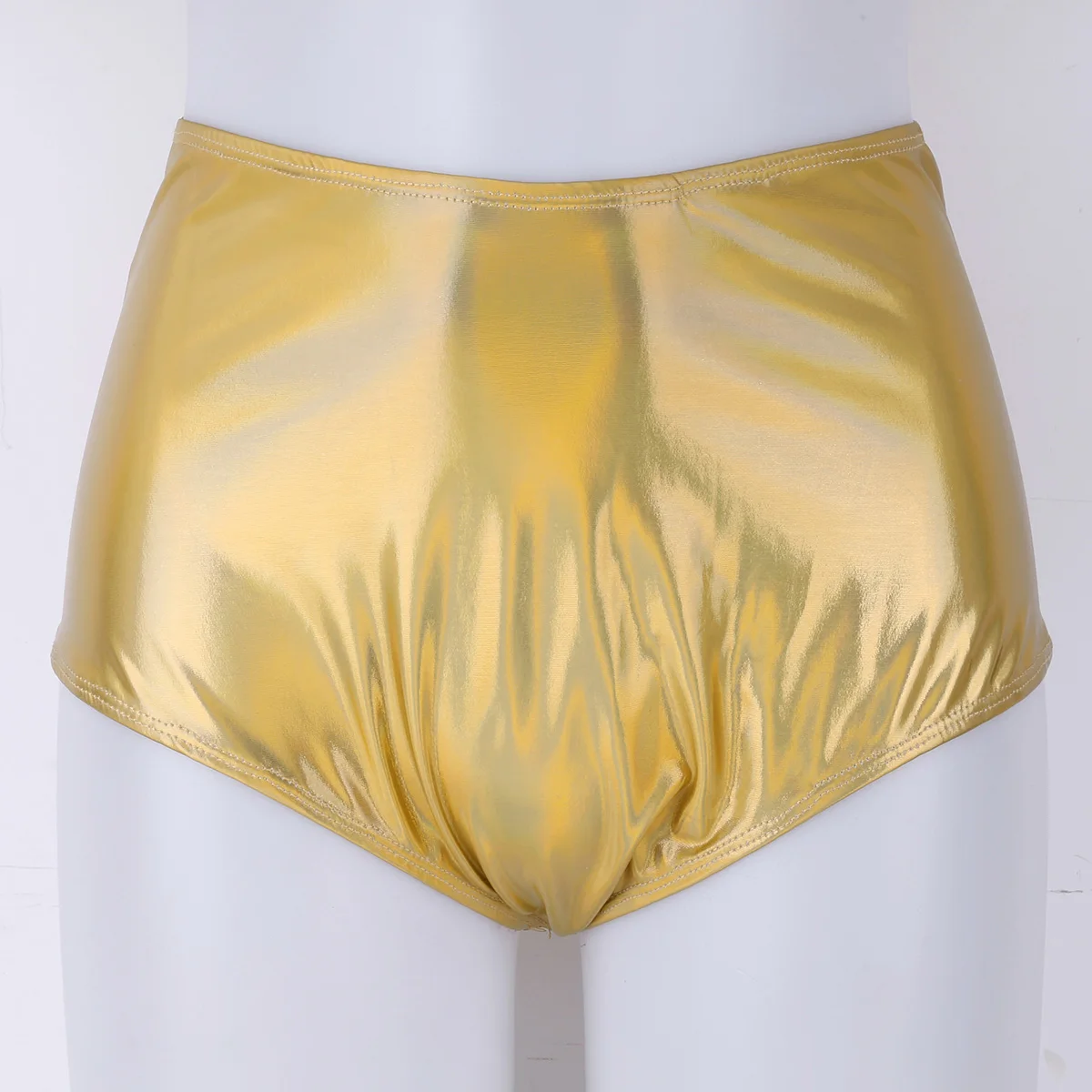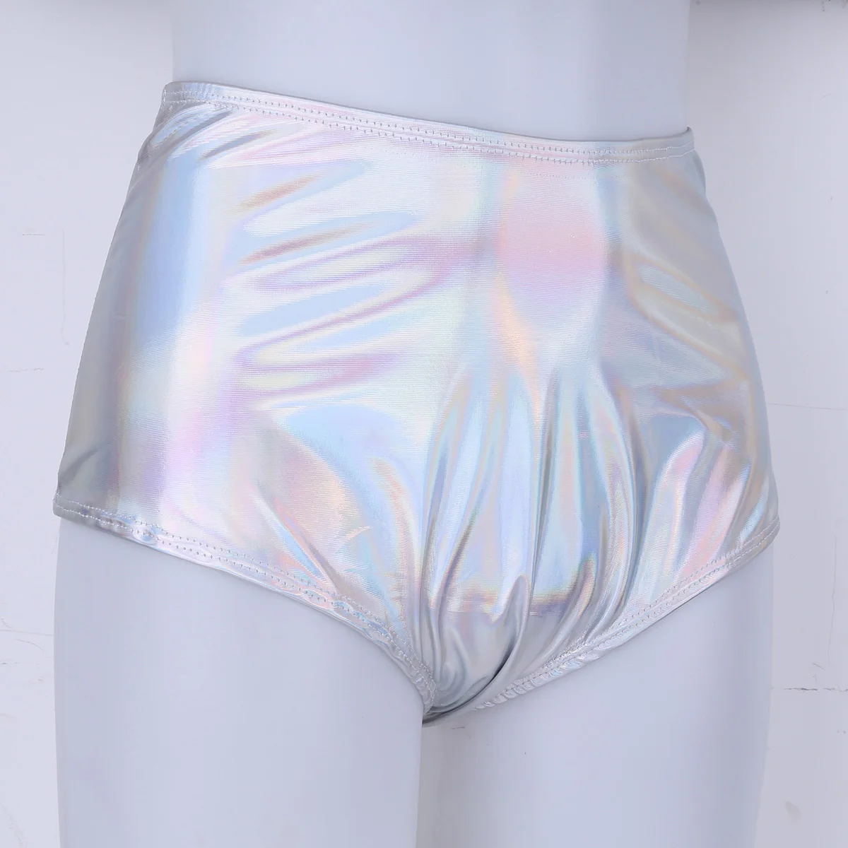Для женщин с высокой талией Maillot De Bain Femme Блестящий металлический Лакированная кожа пикантные туфли для танцев на шесте с большой попой латекс шорты Клубная одежда фестивальный рейв Мини-шорты