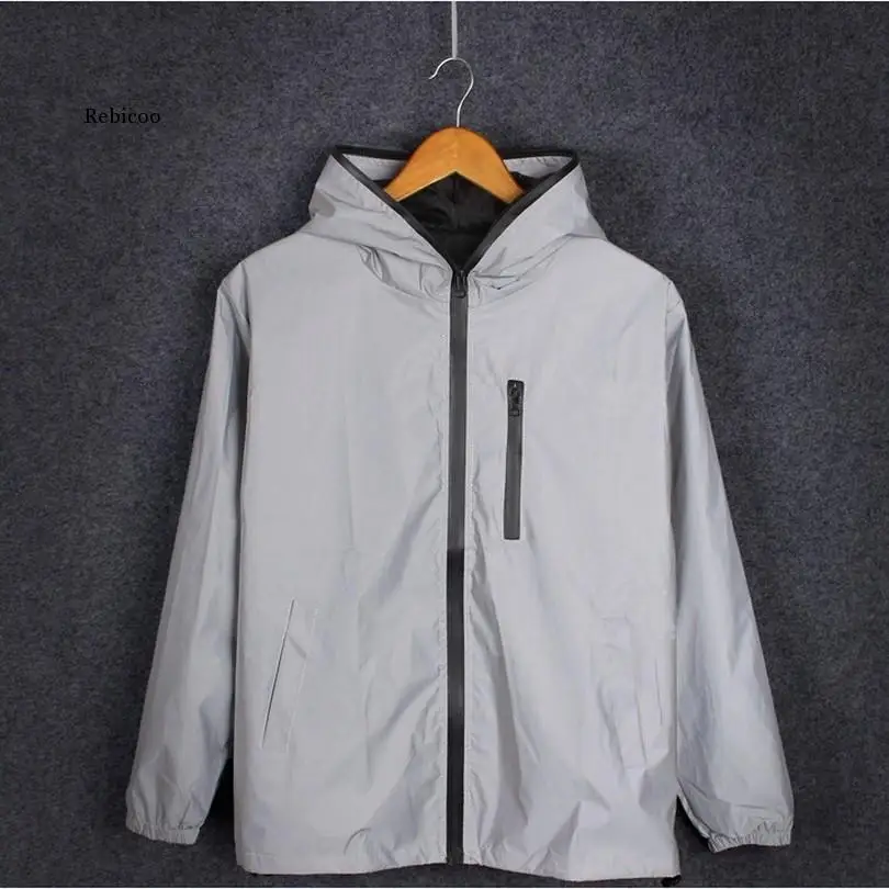 Хит продаж Мужской полный Светоотражающая куртка светильник толстовки женские куртки в стиле хип-хоп Водонепроницаемый ветровка с капюшоном; Верхняя одежда в уличном стиле, пальто человек