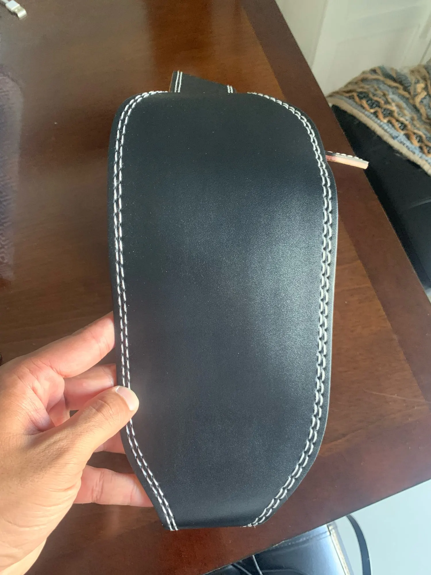 Хороший ремень, доставка быстрая. Есть запах но думаю выветрится . На талию 96-98 см XL подешел идеально
