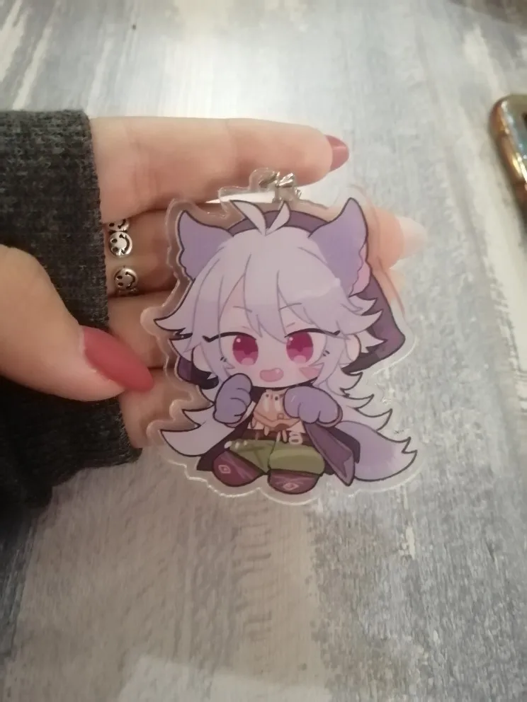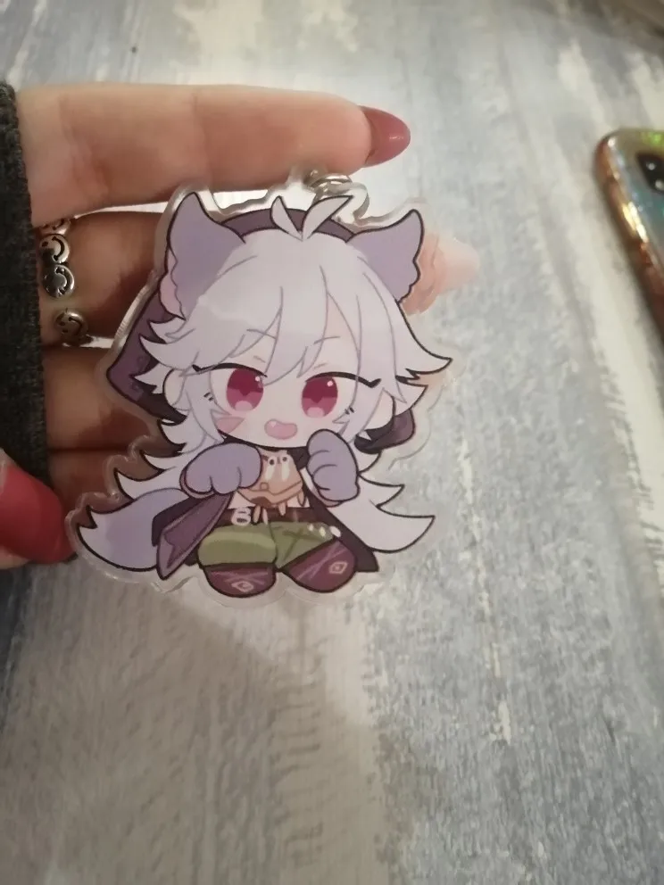 прекрасный брелок,выглядит основа немного хрупкой, но принт хороший и состояние тоже UwU