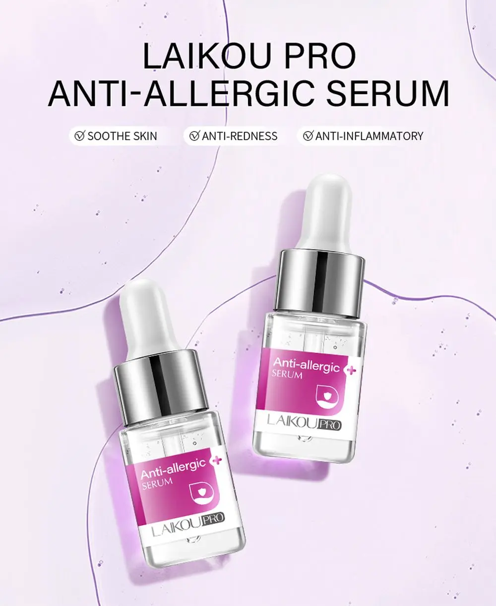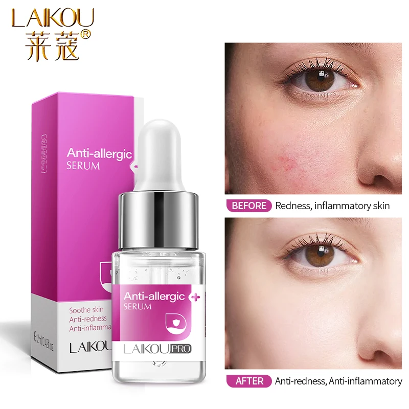 LAIKOU PRO антиаллергическая сыворотка богата магнолией, экстракт коры, экстракт корня софоры ангустифолии и другие природные античувствительные факторы. Это может облегчить чувствительную кожу, уменьшить экстемный раздражитель и повысить антиаллергенные способности кожи. Она сделает вашу кожу более гладкой и не вызывает аллергии.