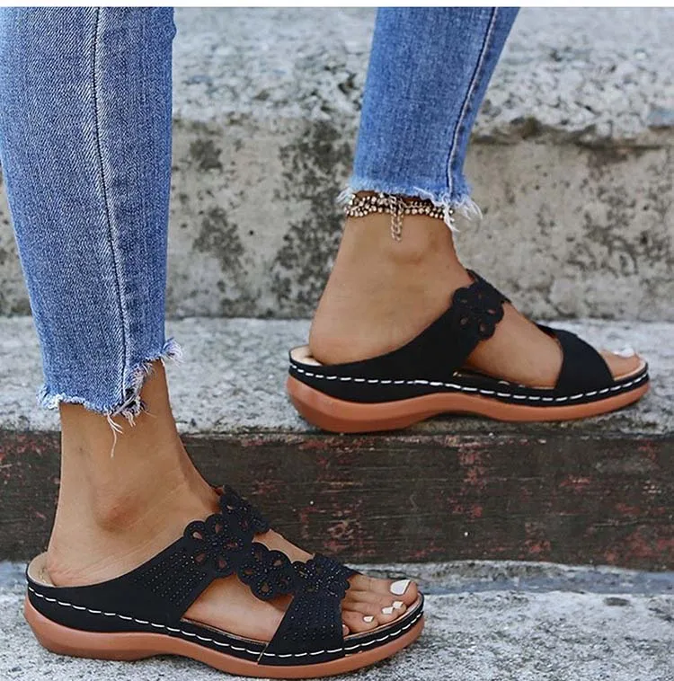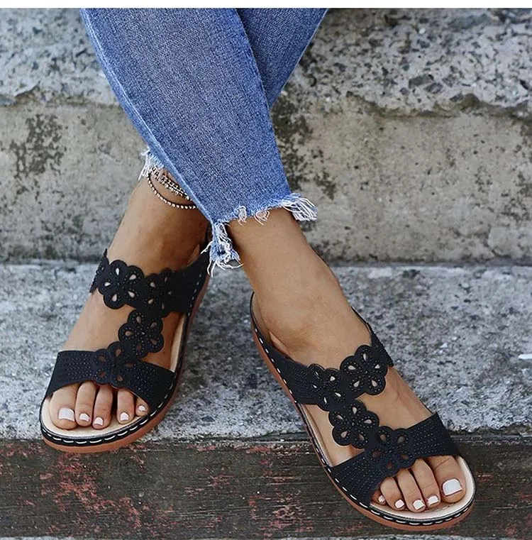 Сандалии женские с открытым носком, босоножки с цветами, пляжные та...