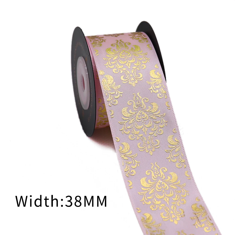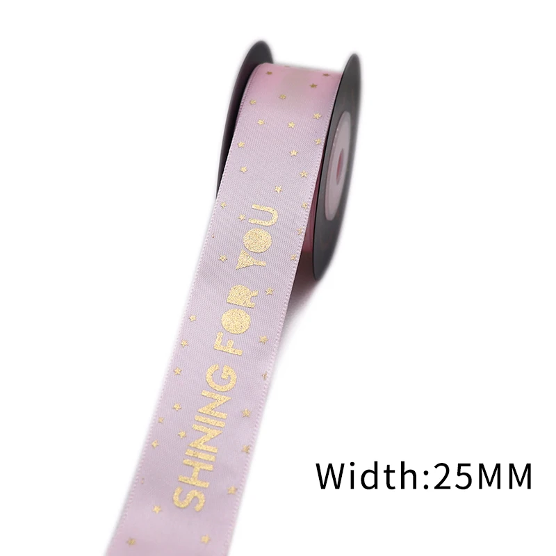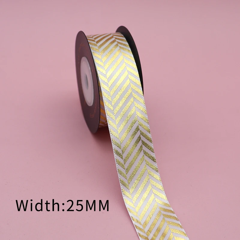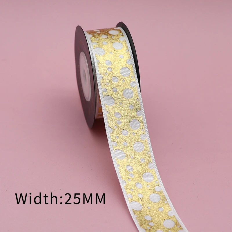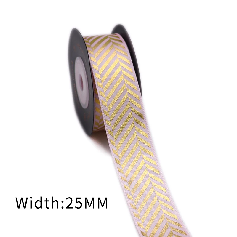 10 ярдов Золотая фольга печатная атласная лента для упаковки подарков Упаковочная Свадебная декор для рождества, дня рождения 2020122201