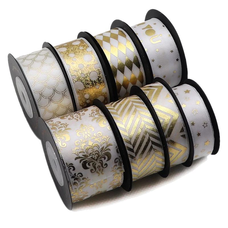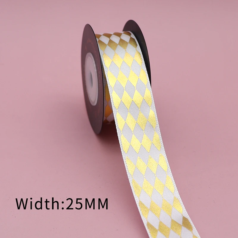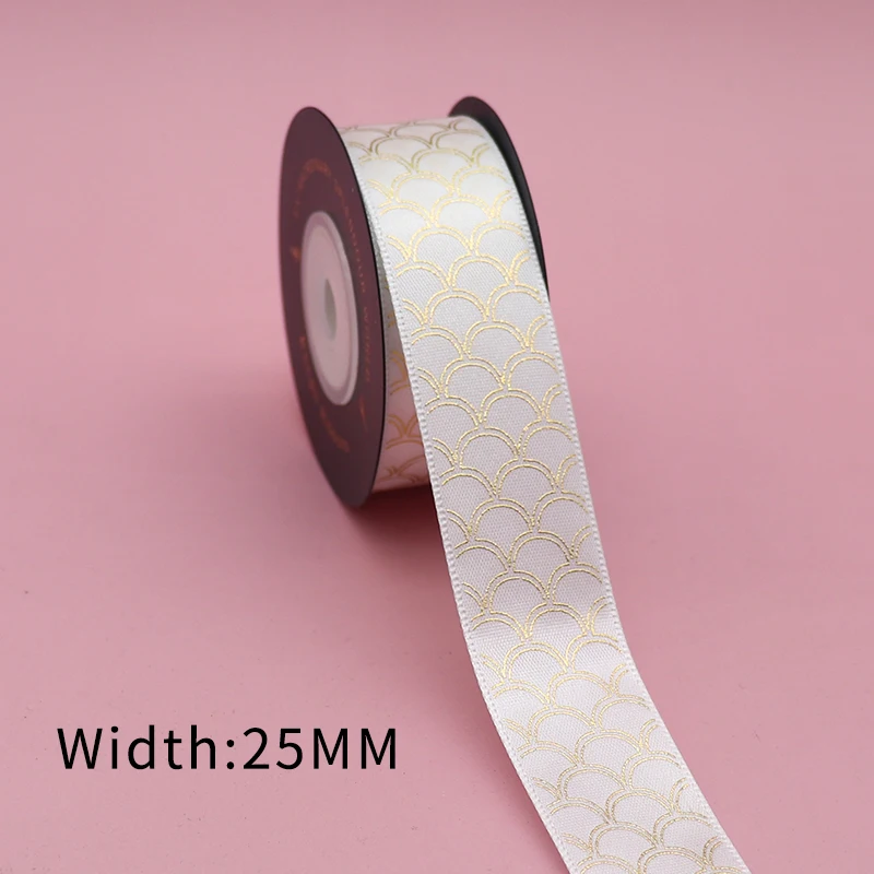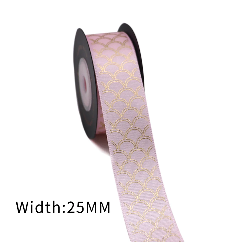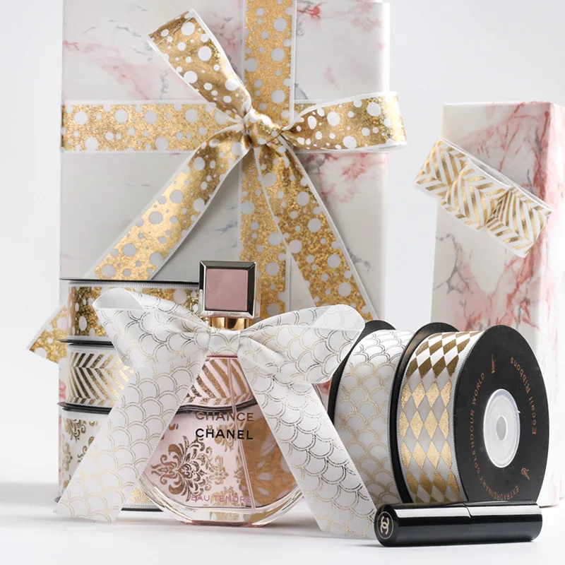 10 ярдов Золотая фольга печатная атласная лента для упаковки подарков Упаковочная Свадебная декор для рождества, дня рождения 2020122201