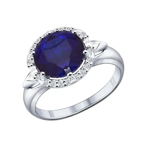 Кольцо SOKOLOV из серебра с корундом сапфировым (синт.) и фианитами