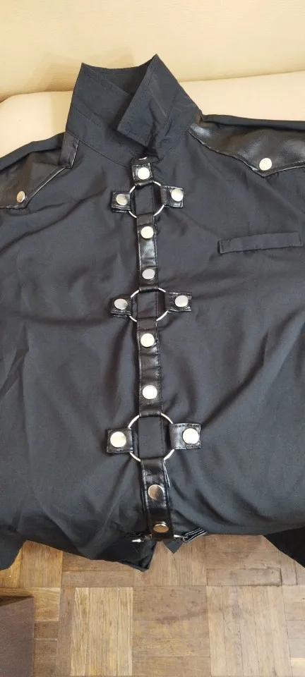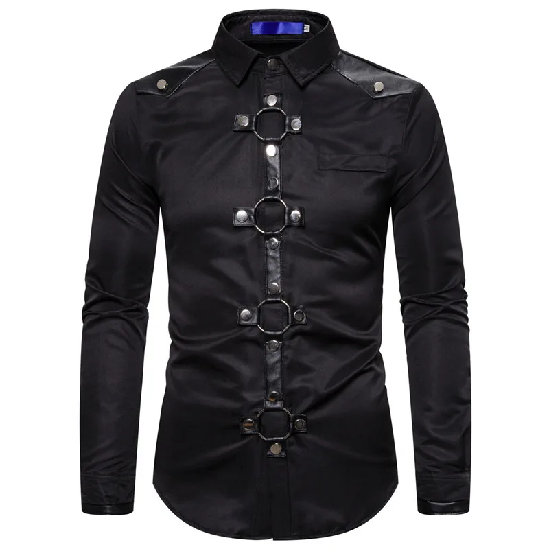 Мужская Однотонная рубашка-карго с заклепками в готическом стиле, приталенная, для вечерние, одежда для мужчин