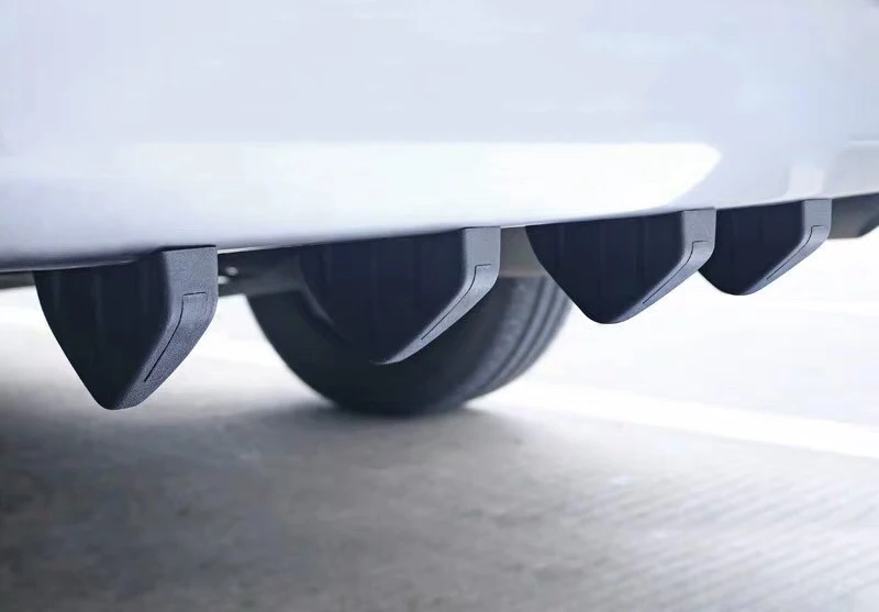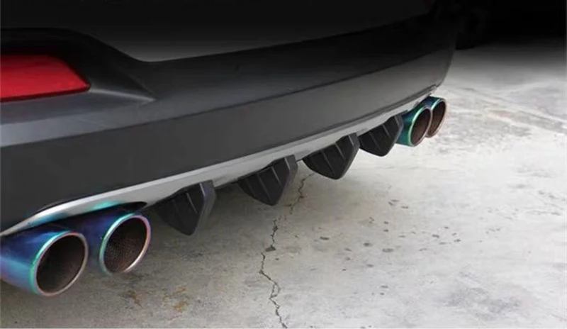 Особенности: Универсальный автомобильный диффузор заднего бампера для внедорожника, Формовочная Защитная крышка спойлера Акулий плавник Защита от столкновений и износа. 100% новый товар высокого качества. Материал: ПВХ Цвет: черный Применимые модели: Универсальные Тип: украшение шасси бампера автомобиля Длина изделия: 12,5 см Продукция включает в себя: 1*4 шт. заднего бампера с винтовым спойлером