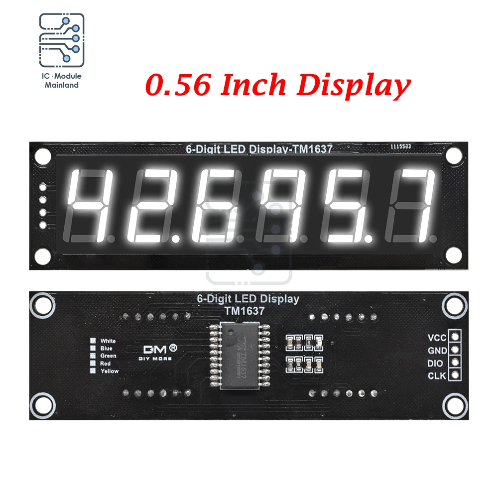6-разрядный модуль TM1637, 7-сегментный цифровые часы-трубка, 0,360,56 дюйма, синий, желтый, белый, зеленый, красный светодиодный дисплей для Arduino